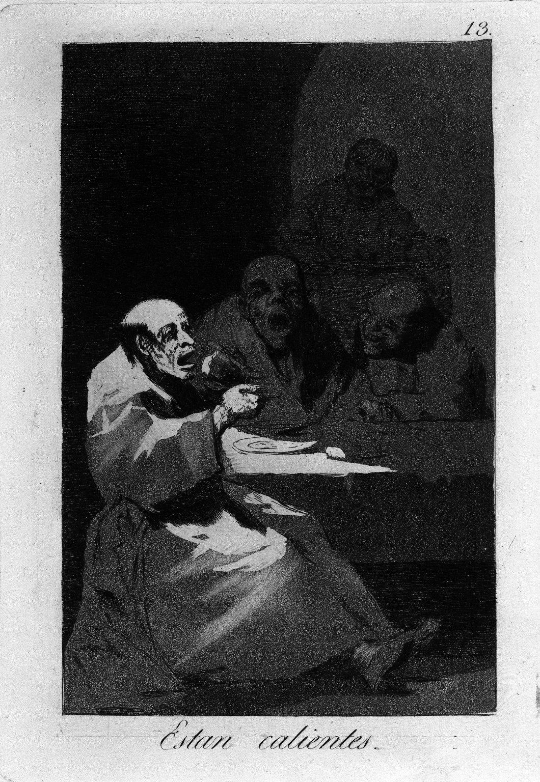 Upper right in plate: "13."; lower center in plate: "Estan calientes." Verso upper left in graphite: "37.33-13"