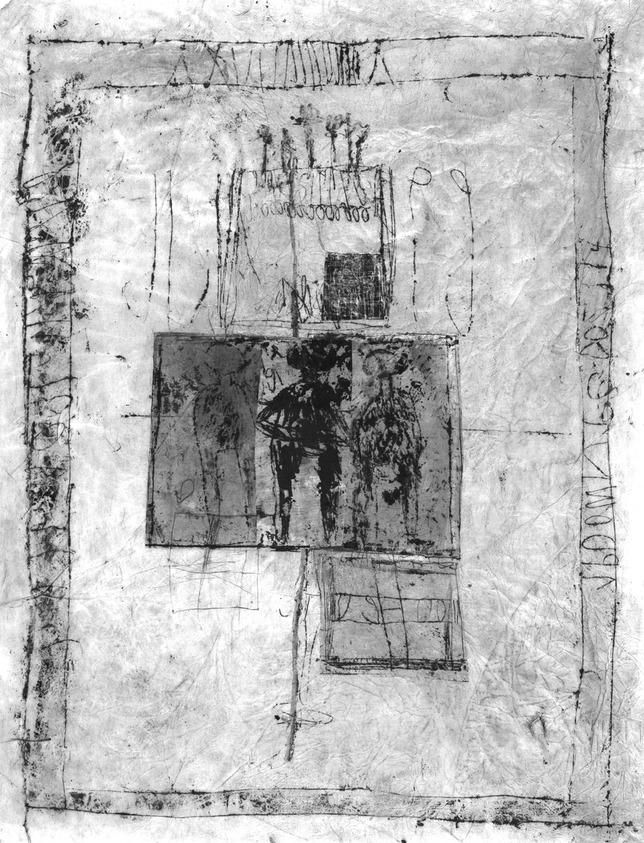 Ink, watercolor, ballpoint pen and paper collage