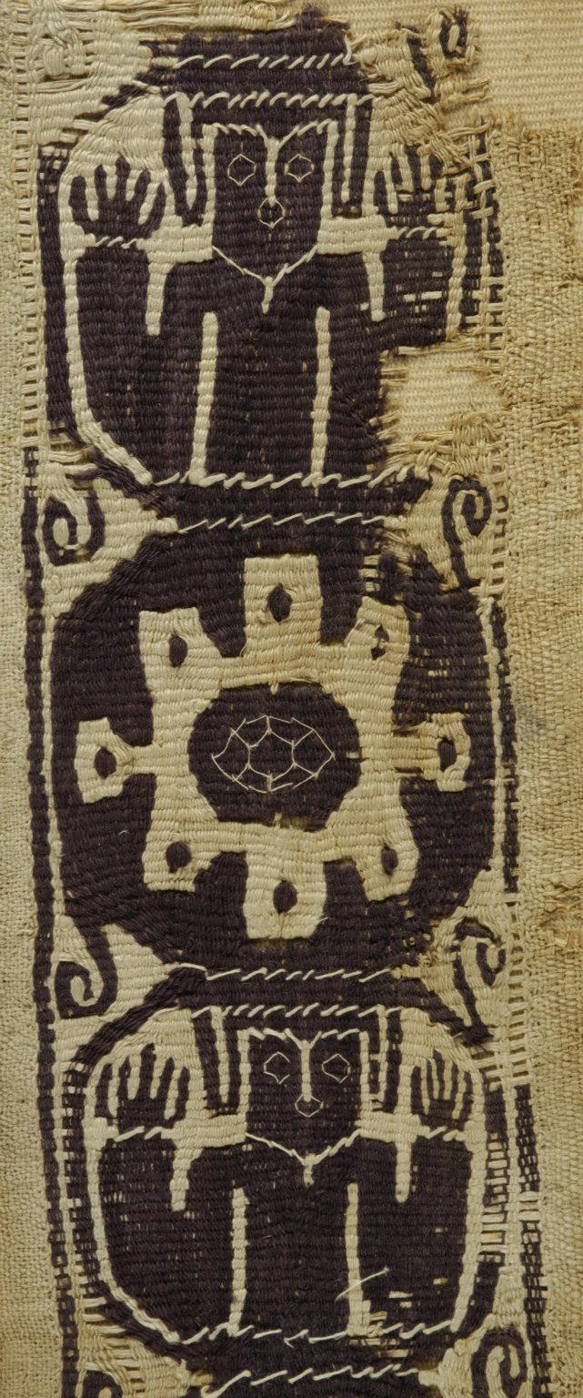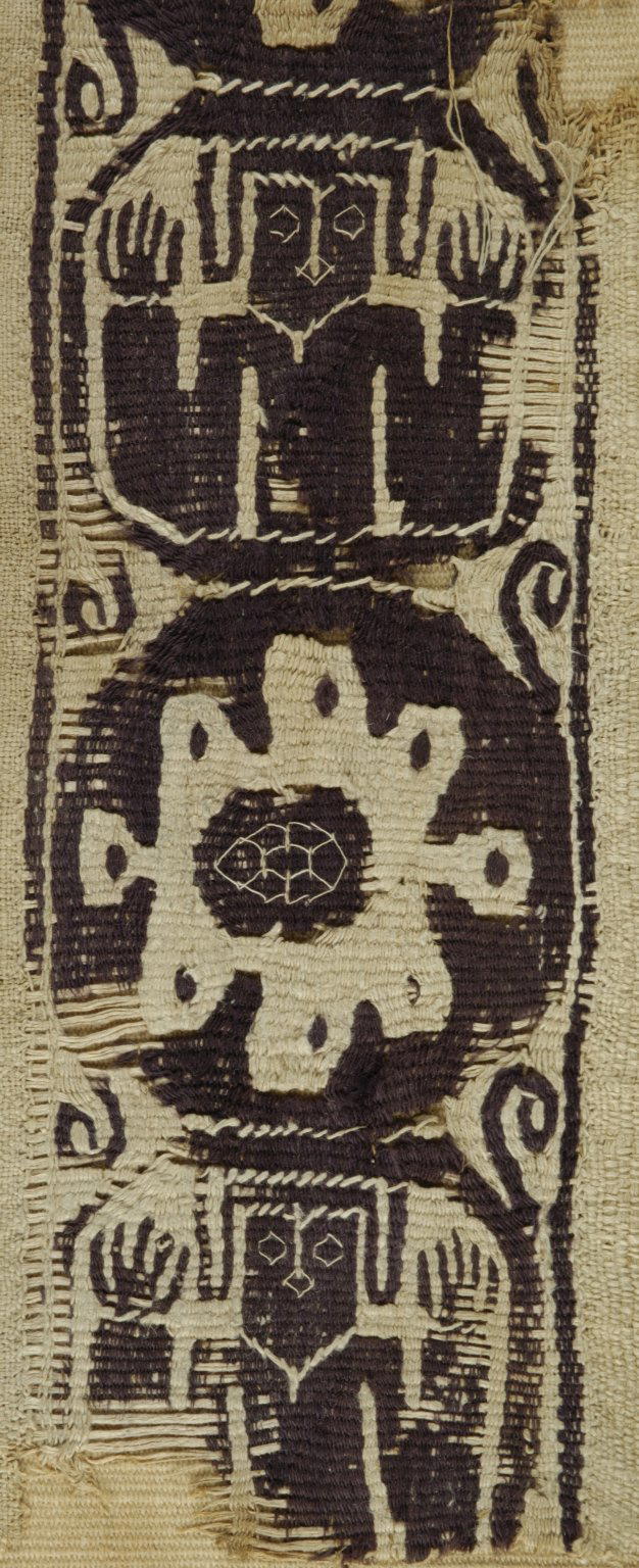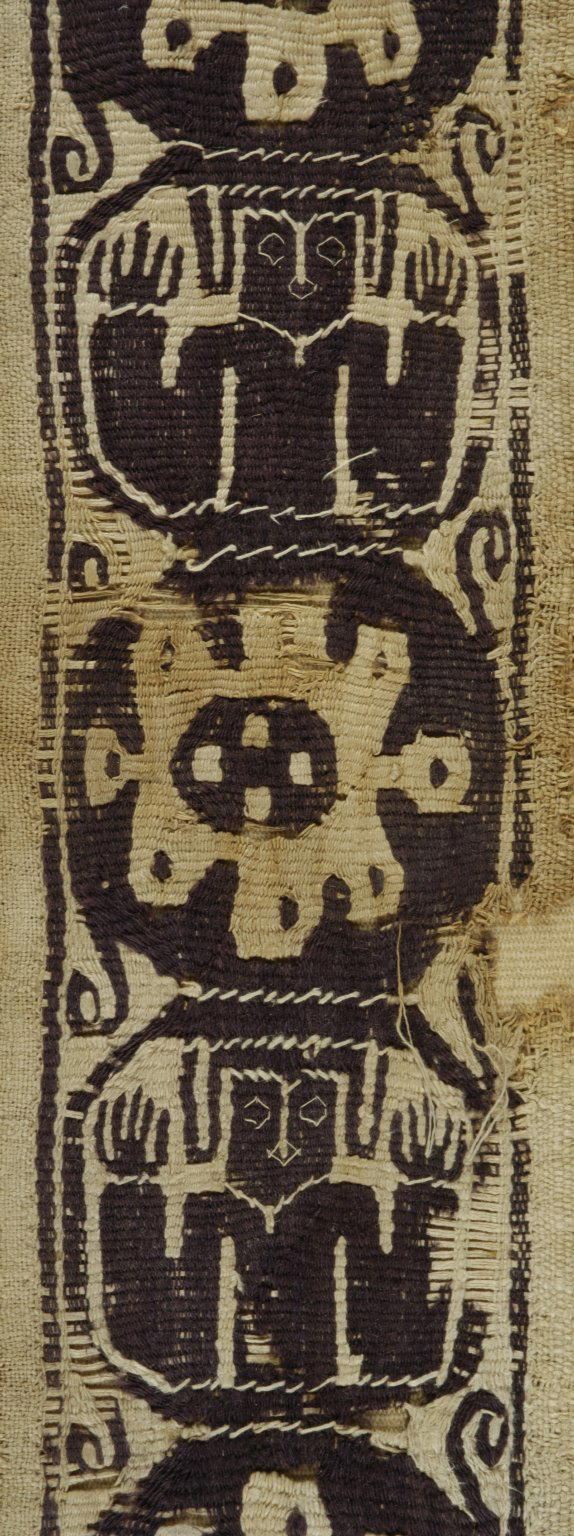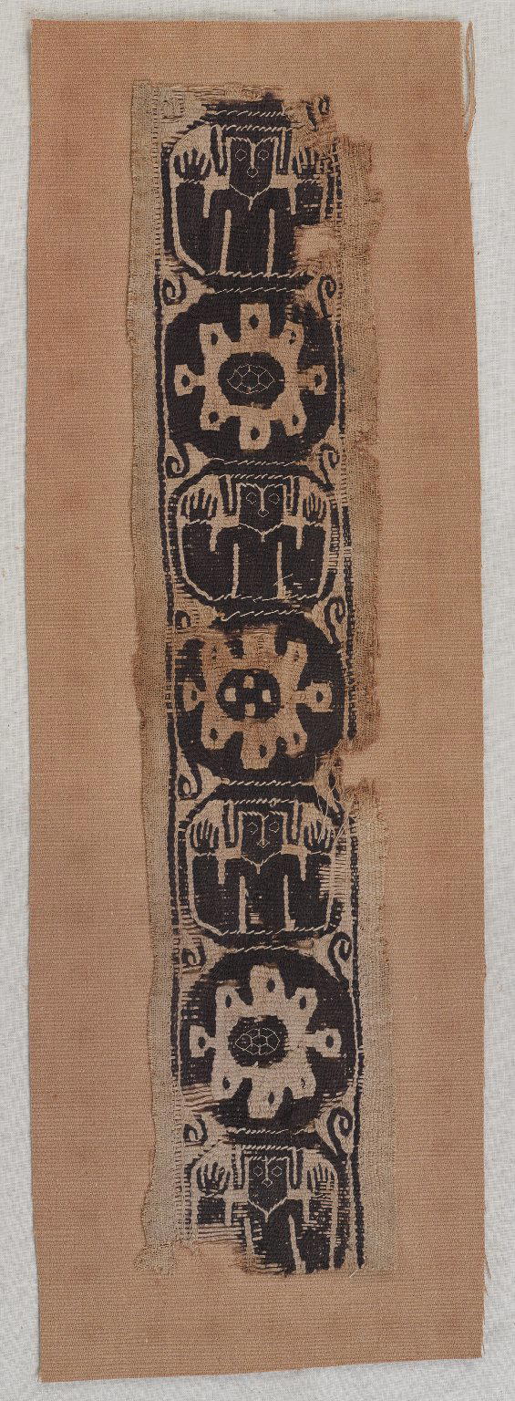 Coptic. Band Fragment with Figural and Botanical Decoration, 8th century C.E. or later. Flax, wool, 20 1/2 x 4 in. (52.1 x 10.2 cm). Brooklyn Museum, Gift of Pratt Institute, 41.803.
