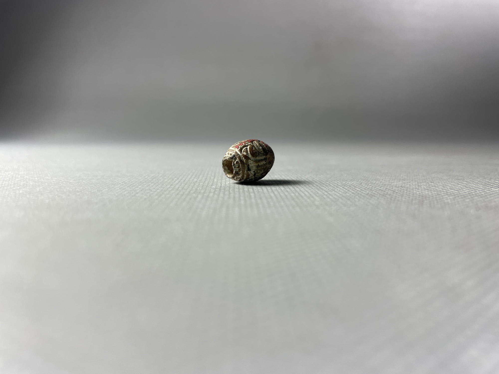 Bead, Steatite, glaze, Diam. 3/8 × 1/2 in. (1 × 1.2 cm). Brooklyn Museum, Charles Edwin Wilbour Fund, 44.123.146. (Photo: Brooklyn Museum)