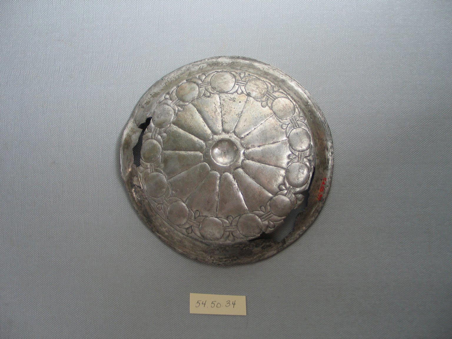 Inscribed Phiale, ca. 410 B.C.E.. Silver, 7/8 x Diam. 6 1/4 in. (2.3 x 15.8 cm) Weight: 150.3 grams(8/3/2011). Brooklyn Museum, Charles Edwin Wilbour Fund, 54.50.34. (Photo: Brooklyn Museum)