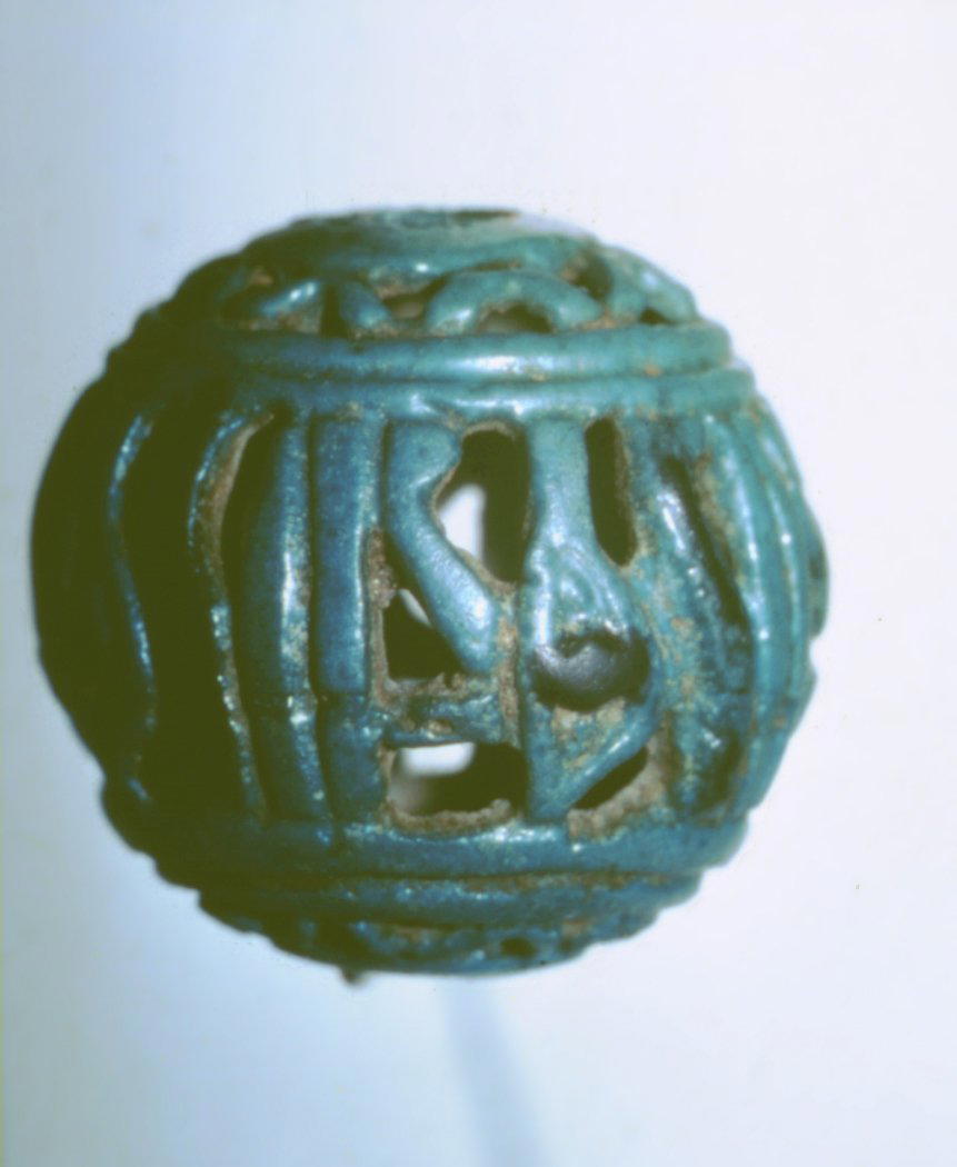 Openwork Bead of Circular Form, Faience, Diam: 1 3/8 in. (3.5 cm). Brooklyn Museum, Charles Edwin Wilbour Fund, 73.87.2. (Photo: Brooklyn Museum)