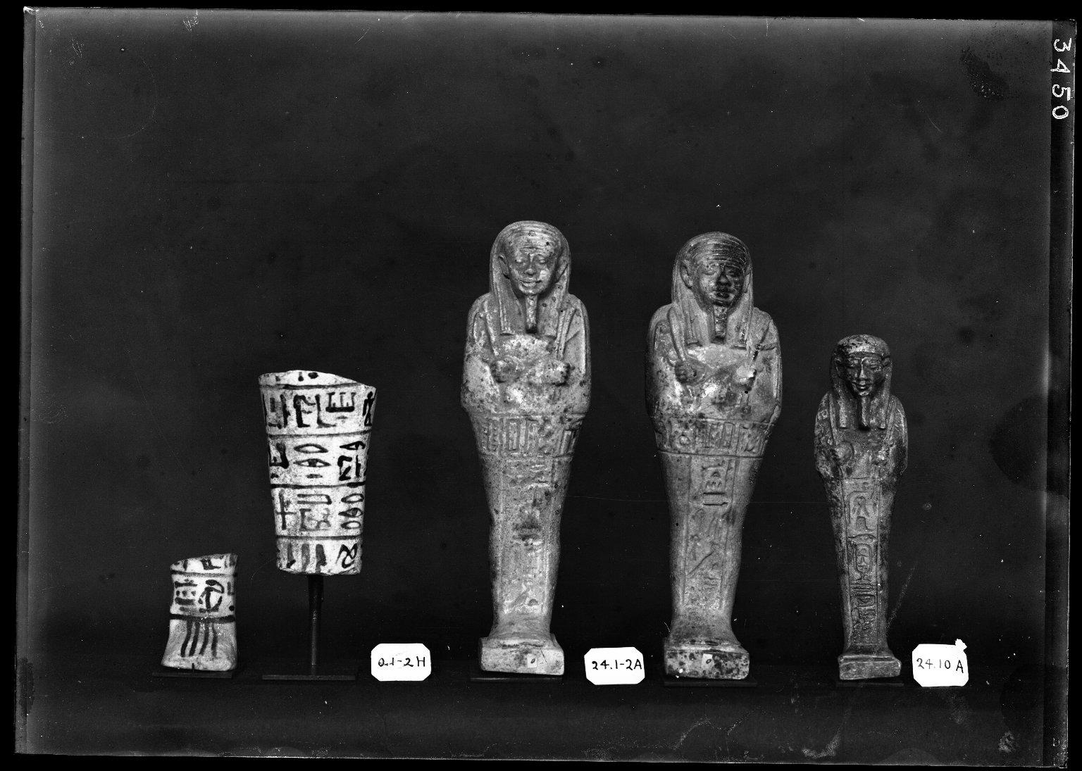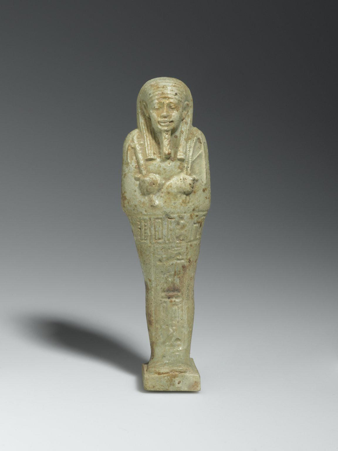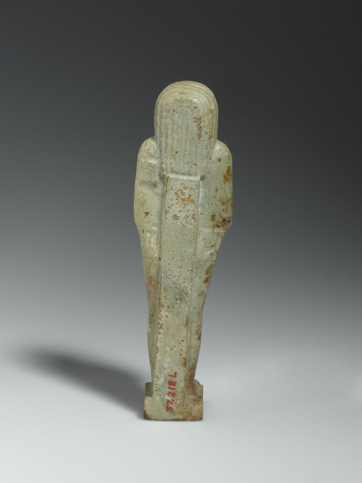 Ushabti of the Priest Nesi-Kedwet, 664–525 B.C.E.. Faience, 5 11/16 x 1 9/16 x 1 3/16 in. (14.5 x 4 x 3 cm). Brooklyn Museum, Charles Edwin Wilbour Fund, 37.218E. (Photo: Brooklyn Museum)