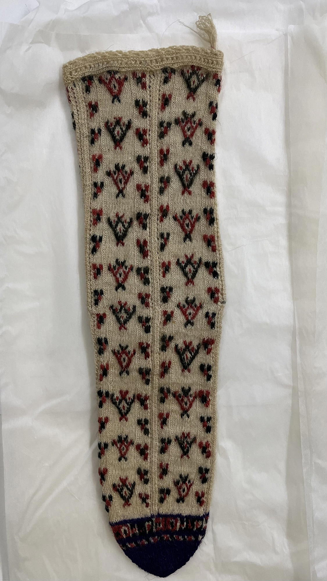 Pair of Calf Length Socks, Knitted and embroidered, L: 37 cm Foot L: 25 cm. Brooklyn Museum, Brooklyn Museum Collection, X743.3. (Photo: Brooklyn Museum)