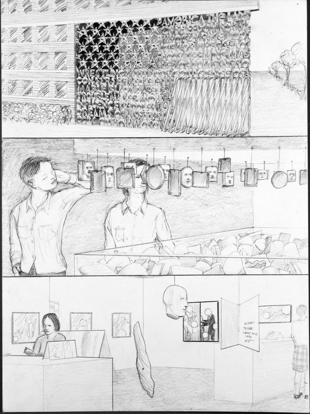 Jim Shaw (American, Midland, MI, born 1952). Dream Drawing (A Jenny Holzer made of...), 1993. Graphite on paper, 12 x 8 7/8 in. (30.5 x 22.5 cm). Brooklyn Museum, Caroline A.L. Pratt Fund, 1994.127. (Photo: Brooklyn Museum)