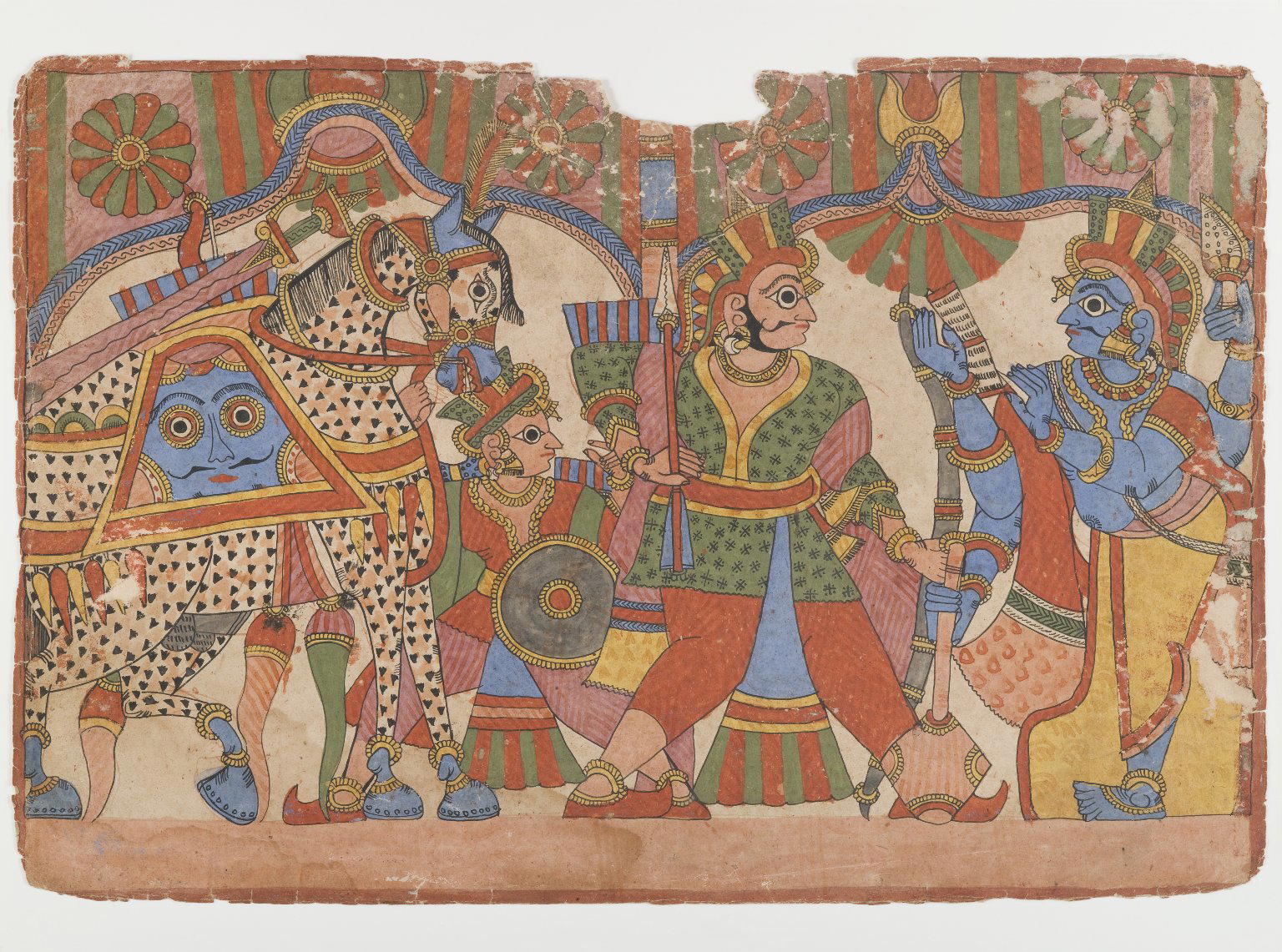 Page from a Mahahabharata Series, ca. 1830–1850. Ink and color on paper, 11 x 16 5/8 in. (27.9 x 42.2 cm). Brooklyn Museum, Gift of Walter M. Spink in honor of Amy and Robert L. Poster, 2004.113.1. (Photo: Brooklyn Museum)