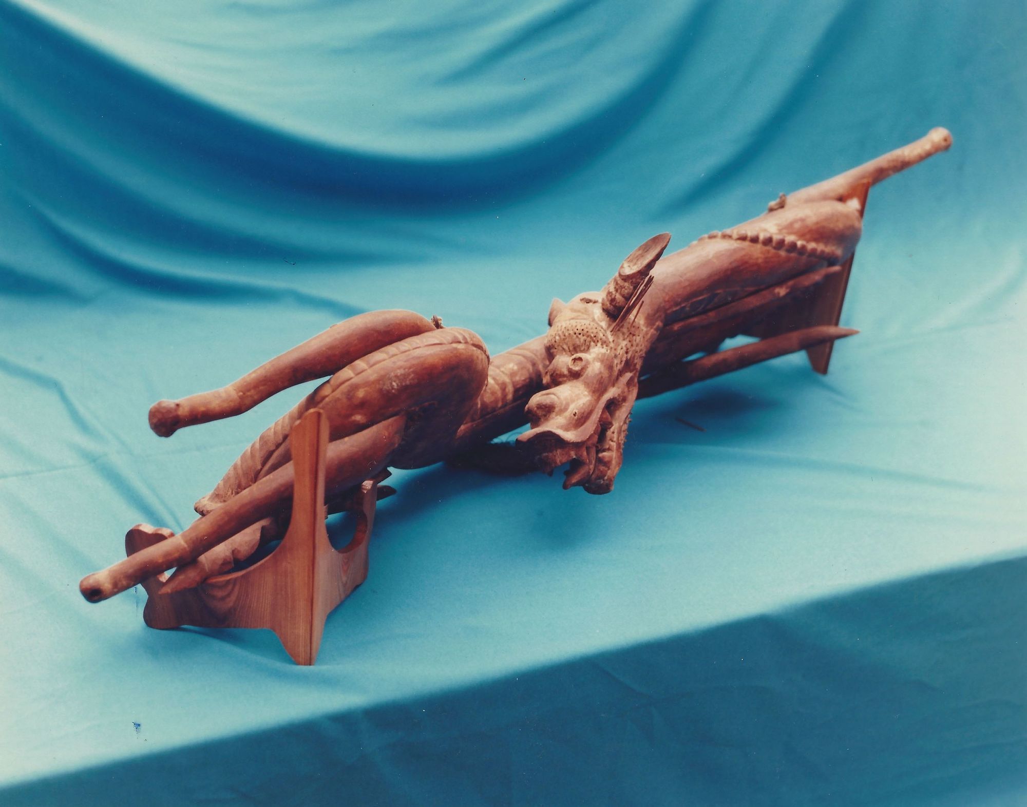 Architectural Element in the Shape of a Dragon, 19th century. Wood, pigment, 42 1/2 × 12 5/8 × 8 11/16 in. (108 × 32 × 22 cm). Brooklyn Museum, Gift of the Carroll Family Collection, 2021.17.8. (Photo: Courtesy of The Honorable Joseph P. Carroll and Professor Roberta L. Carroll, M.D.)