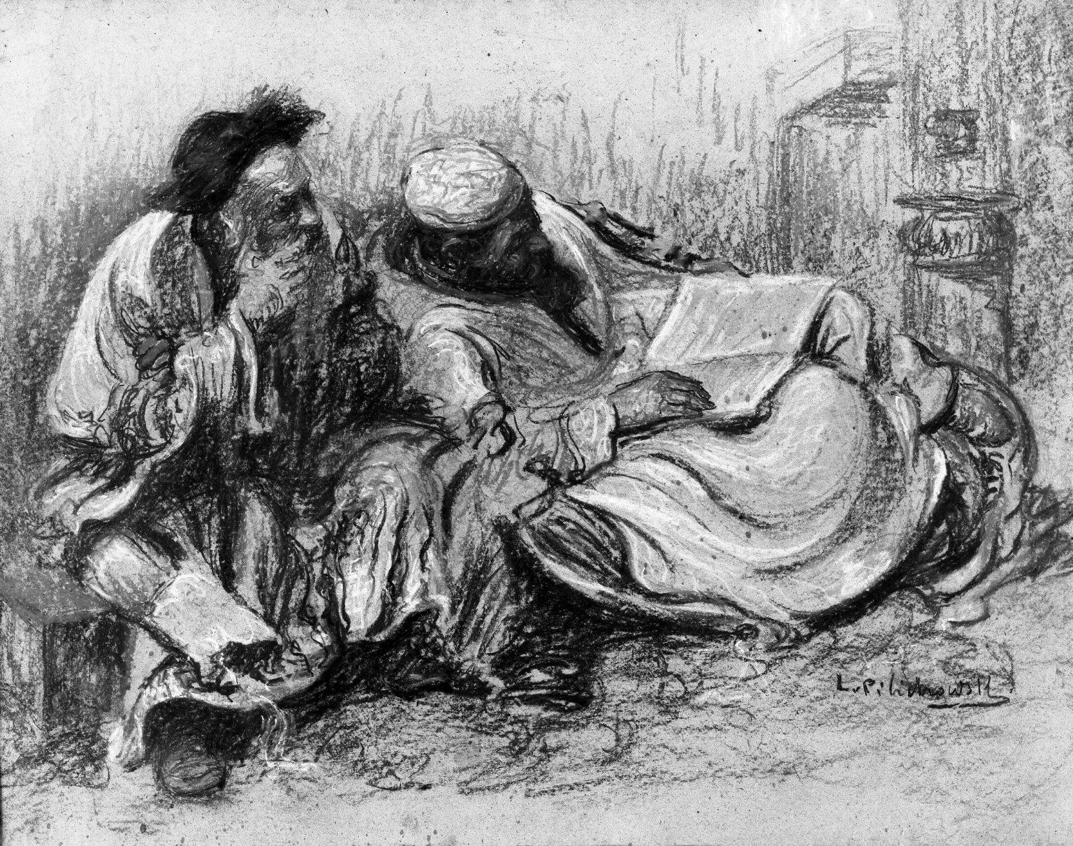 Leopold Pilchowski (Polish, 1869–1934). In the Shadow of the Wailing Wall, 20th century. Watercolor, paper: 22 1/4 x 27 15/16 in. (56.5 x 71 cm) Frame: 23 1/4 x 28 15/16 in. (59 x 73.5 cm). Brooklyn Museum, Gift of Baron Gustave von Loewenfeld, 28.383. (Photo: Brooklyn Museum)