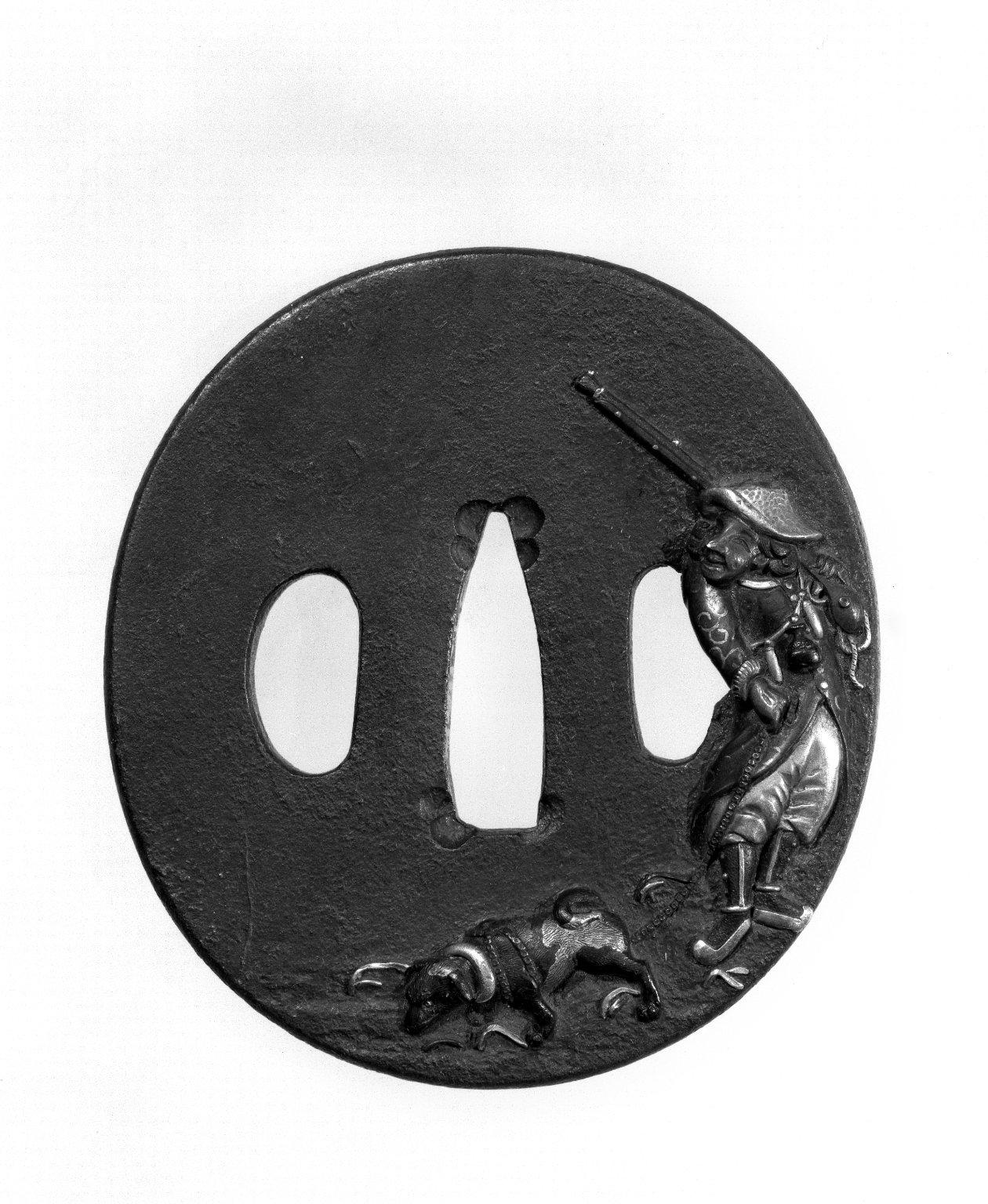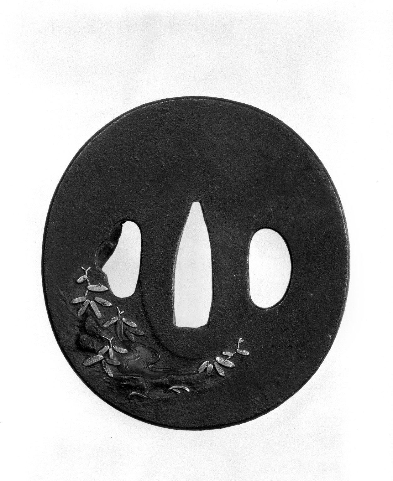 Sword Guard, late 18th–19th century. Iron with shakudo, copper, and gilding, 2 3/4 x 2 9/16 in. (7 x 6.5 cm). Brooklyn Museum, Gift of Mrs. Gustav Bissing, 34.1122. (Photo: Brooklyn Museum)