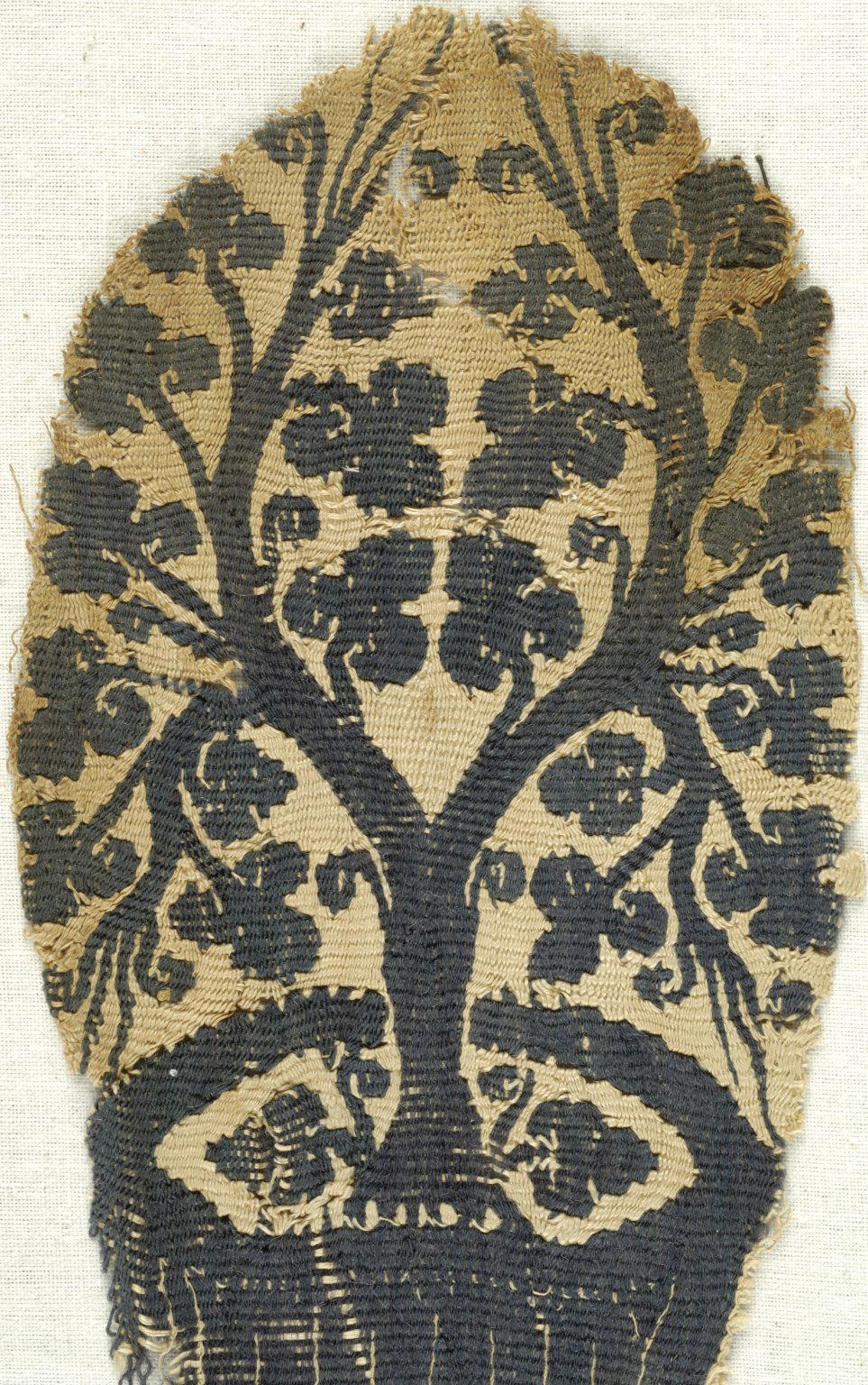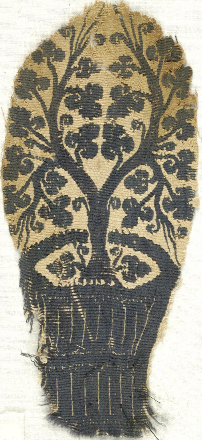Coptic. Tree Growing From a Basket, 5th century C.E.. Flax, wool, 6 7/8 x 3 1/8 in. (17.5 x 7.9 cm). Brooklyn Museum, Charles Edwin Wilbour Fund, 38.673. (Photo: Brooklyn Museum (in collaboration with Index of Christian Art, Princeton University))