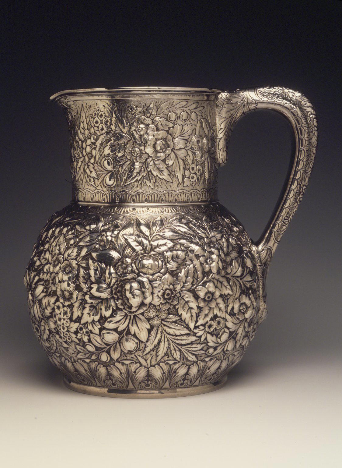 American. Pitcher, ca. 1879. Silver, 8 1/2 x 6 1/2 x 6 1/2 in. (21.6 x 16.5 x 16.5 cm). Brooklyn Museum, Anonymous gift, 66.177.31. (Photo: Brooklyn Museum)