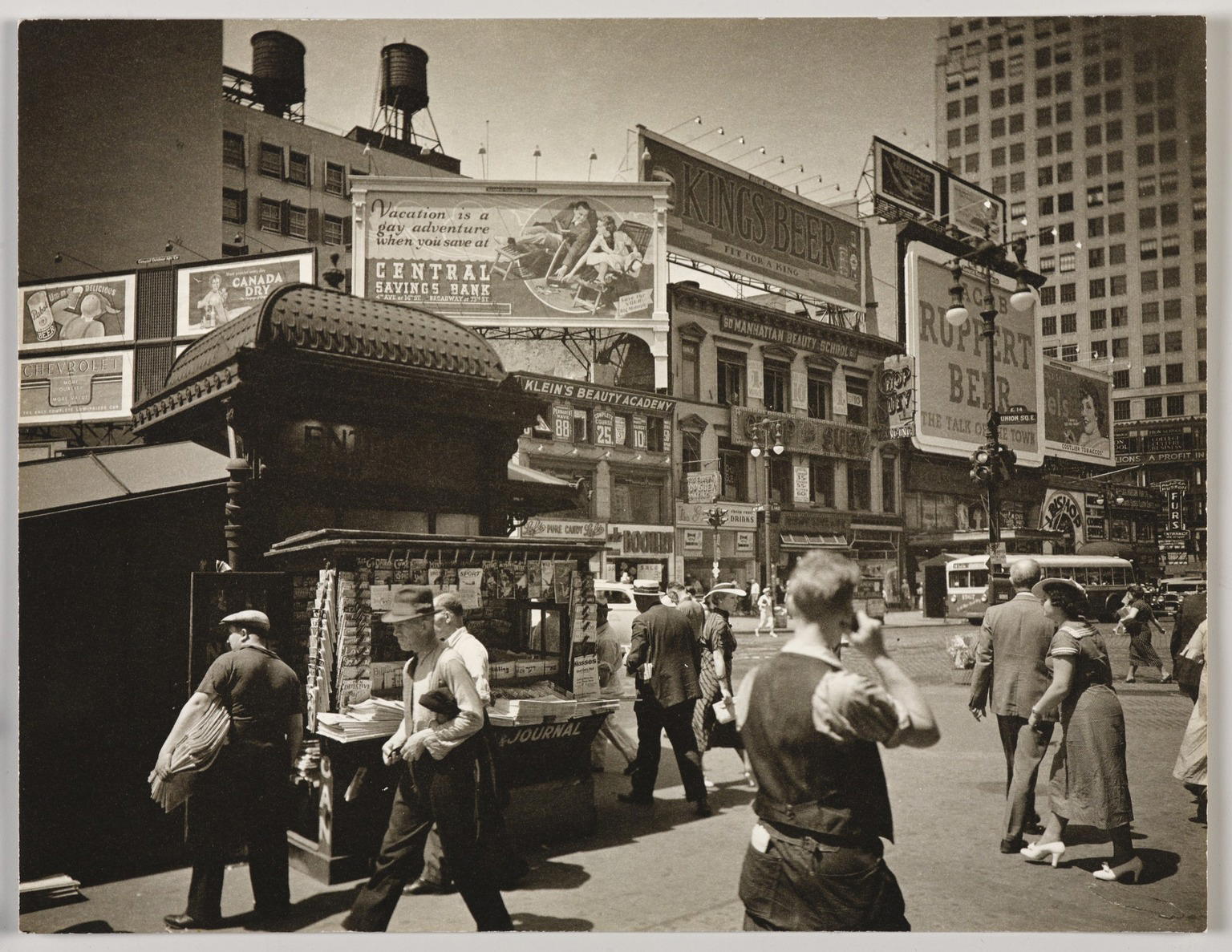 Berenice Abbott (American, 1898–1991). Union Square, July 16, 1936. Gelatin silver print, 6 7/8 x 8 7/8 in. (17.5 x 22.5 cm). Brooklyn Museum, Brooklyn Museum Collection, X858.87.