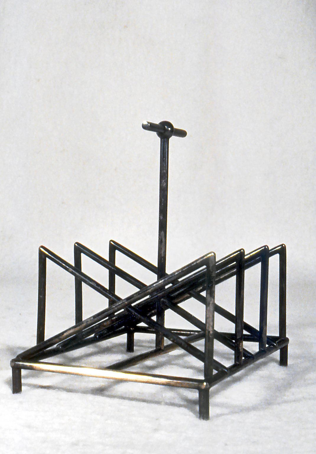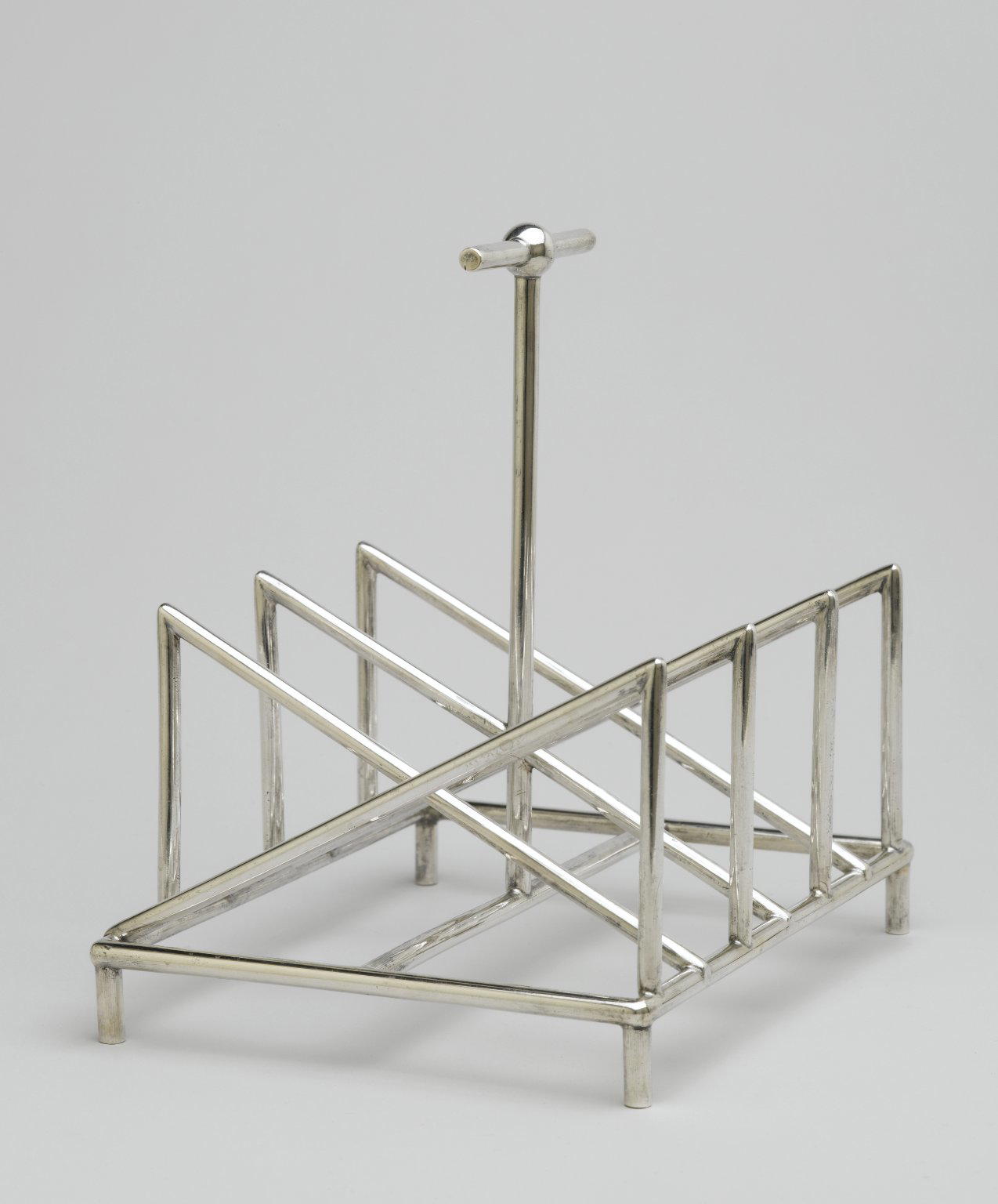 Christopher Dresser (English, 1834–1904); Tiffany & Company (American, founded 1853). Toast Rack, ca. 1880. Silverplate, 5 3/8 x 5 1/4 x 4 1/4 in. (13.7 x 13.3 x 10.8 cm). Brooklyn Museum, Gift of Marie Bernice Bitzer, by exchange, 1997.114. (Photo: Brooklyn Museum)