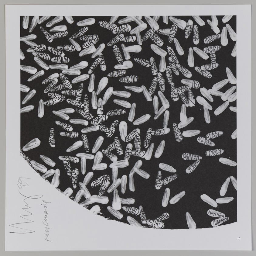 Arlan Huang (American, born 1948); Fay Chiang (American, 1952–2017). Sweet Rice, 1998; published 1999, distributed 2022. Offset lithograph, sheet: 10 3/4 × 10 3/4 in. (27.3 × 27.3 cm). Brooklyn Museum, Gift of Eugenie Tsai, 2022.10.16. (Photo: Brooklyn Museum)