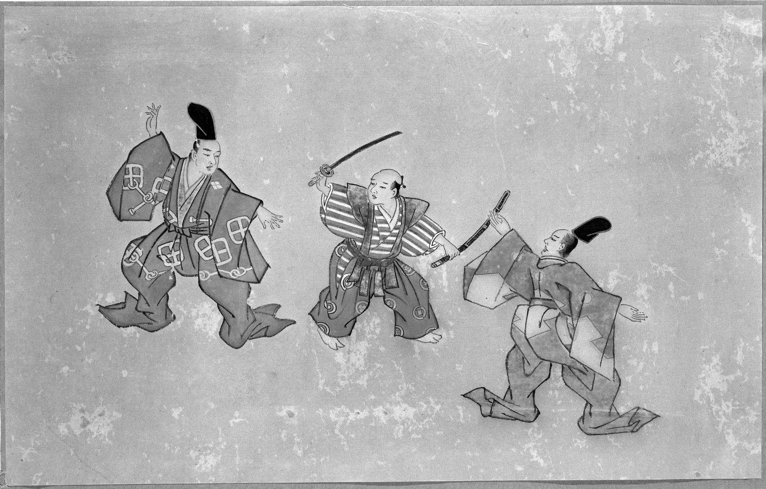 Drawing the Sword, Album Leaf Painting, early 19th century. Ink and color on paper, Image: 10 1/4 x 16 3/8 in. (26 x 41.6 cm). Brooklyn Museum, Gift of Dr. Jack Hentel, 81.204.5. (Photo: Brooklyn Museum)