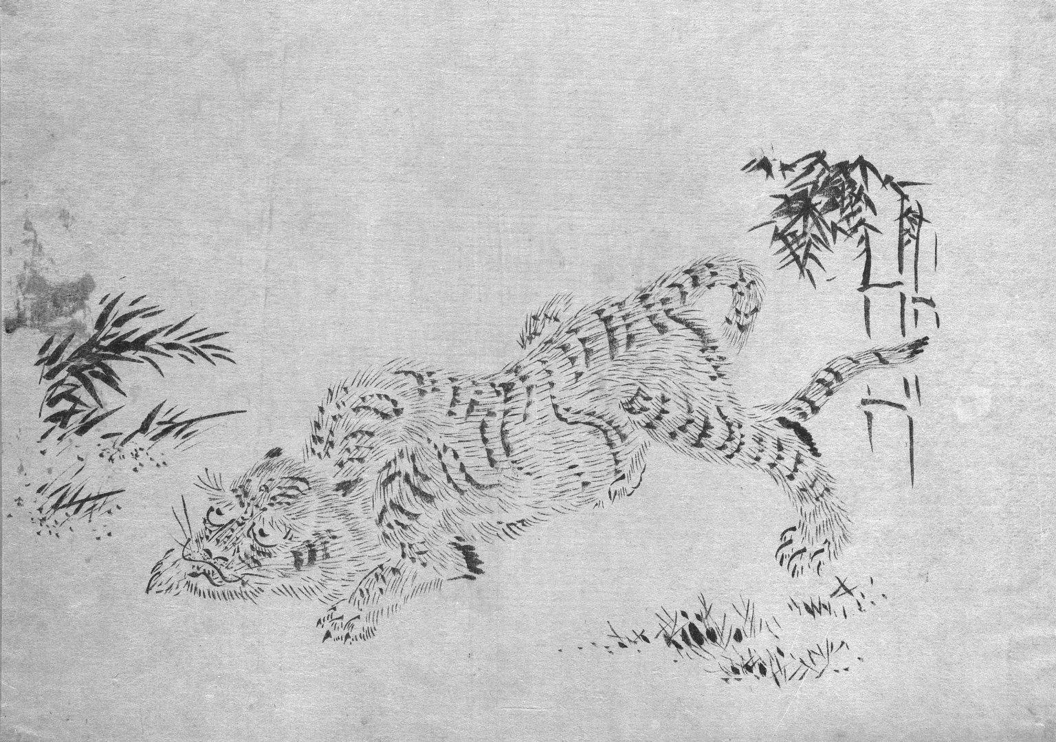 Tiger and Bamboo, 19th century. Brush sketch, ink on paper, Image: 9 3/4 x 13 3/4 in. (24.8 x 34.9 cm). Brooklyn Museum, Gift of Dr. Jack Hentel, 81.204.20. (Photo: Brooklyn Museum)
