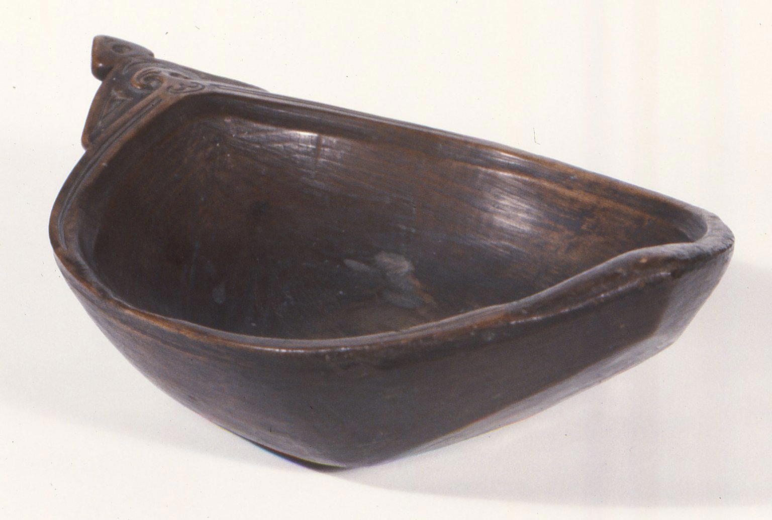 Ainu. Bowl with One Carved Handle, late 19th–early 20th century. Wood, 3 3/8 x 11 1/4 in. (8.6 x 28.6 cm). Brooklyn Museum, Gift of Herman Stutzer, 12.683. (Photo: Brooklyn Museum)