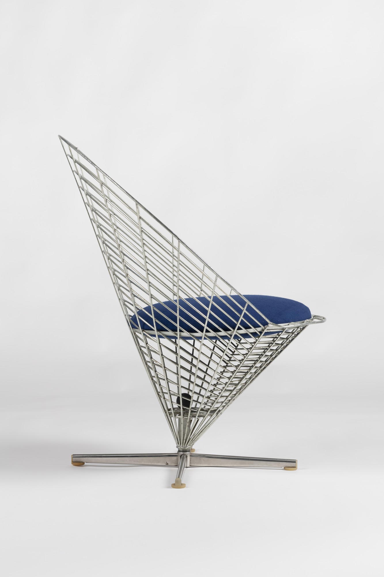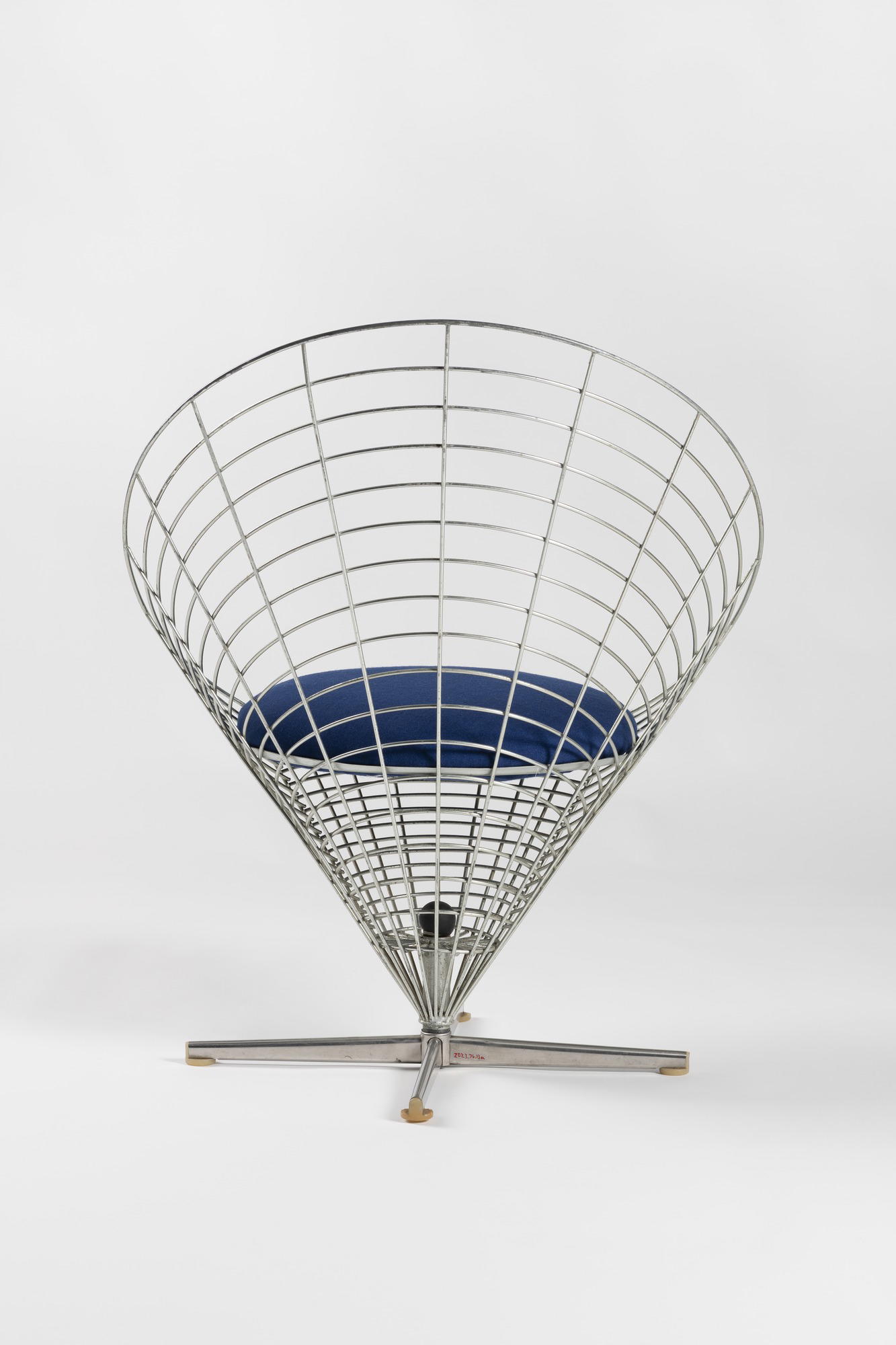 Verner Panton (Danish, 1926–1998). Cone Chair, Model K2, Designed 1959. Steel wire, sheet aluminum, modern cotton upholstery, 29 1/4 × 25 1/4 × 24 in. (74.3 × 64.1 × 61 cm). Brooklyn Museum, Gift of Dennis Freedman, in honor of the Brooklyn Museum's 200th Anniversary, 2023.76.13. (Photo: Brooklyn Museum)