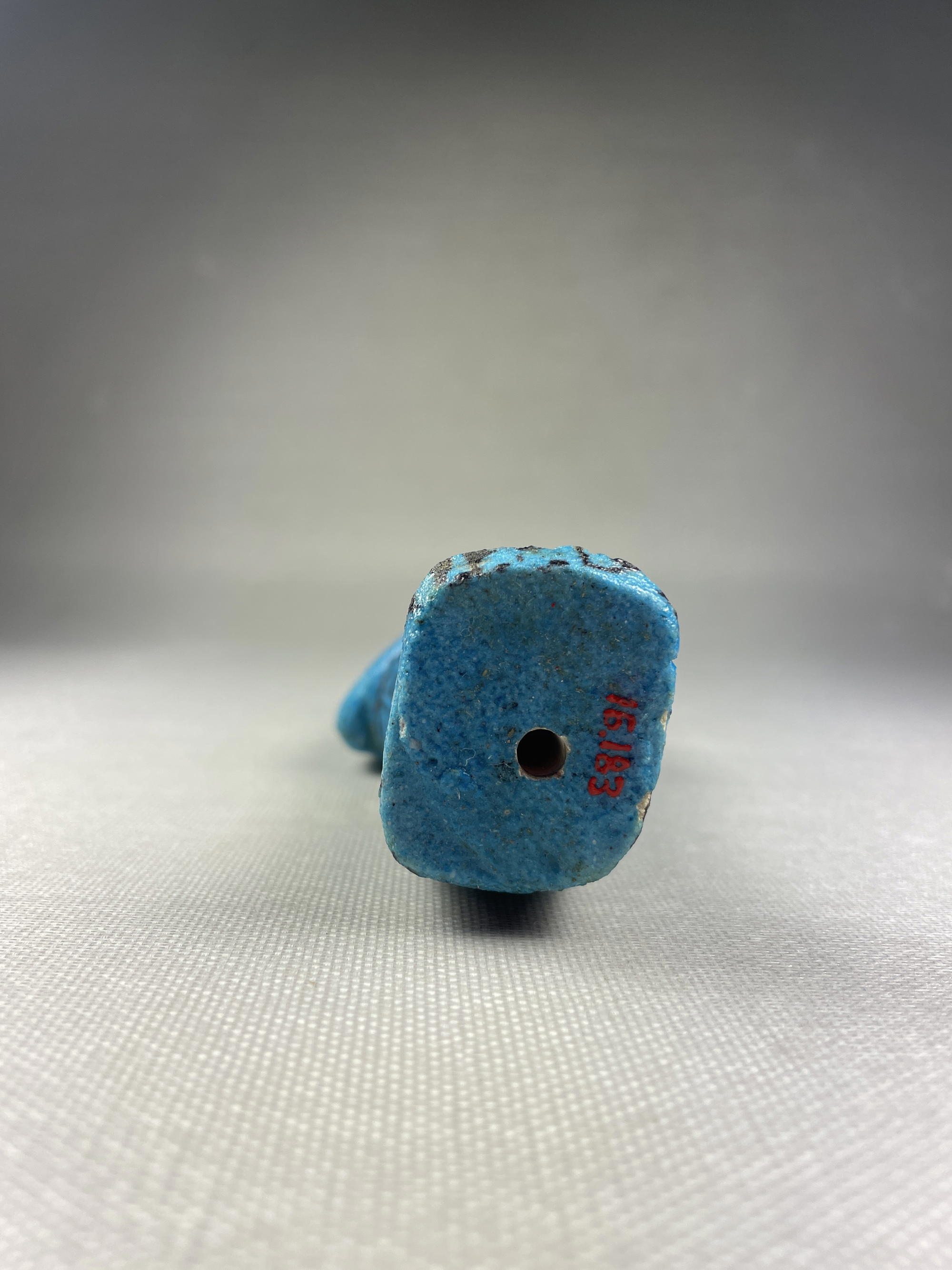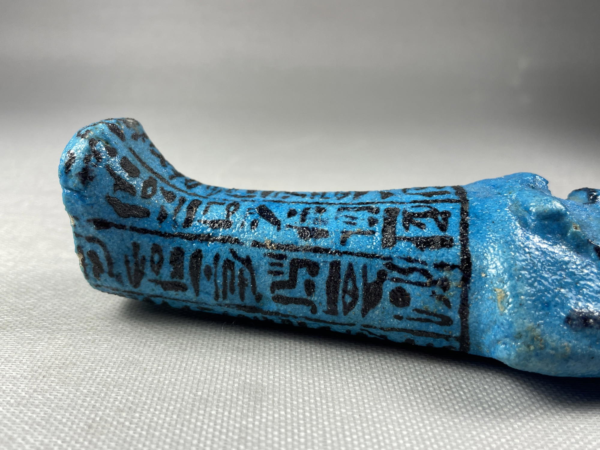 Shabty of Nesitanebetisheru, Daughter of Pinedjem II, ca. 1075–945 B.C.E.. Faience, 5 7/8 × 2 11/16 × 1 3/8 in. (15 × 6.9 × 3.5 cm). Brooklyn Museum, Gift of Evangeline Wilbour Blashfield, Theodora Wilbour, and Victor Wilbour honoring the wishes of their mother, Charlotte Beebe Wilbour, as a memorial to their father, Charles Edwin Wilbour, 16.183. (Photo: Brooklyn Museum)