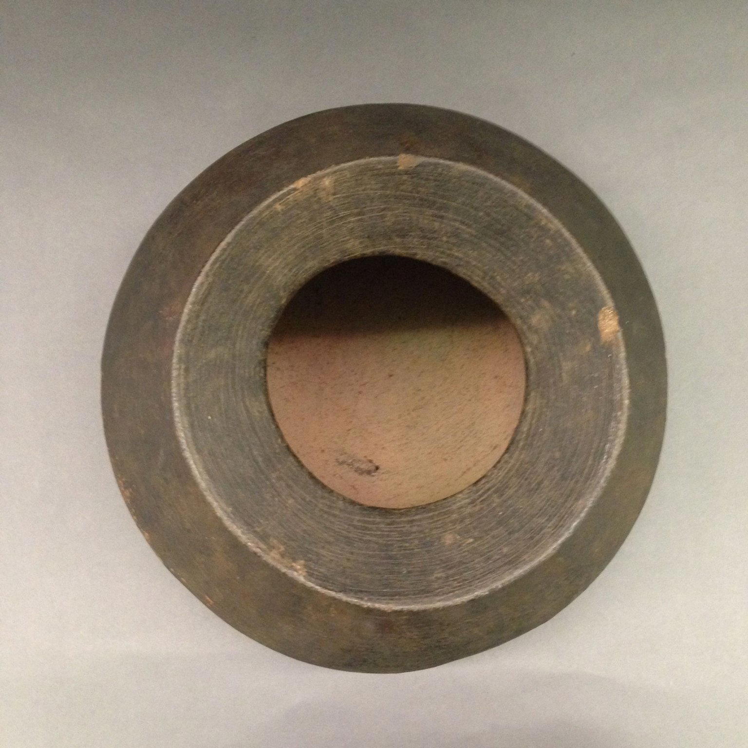 height: 9 3/4 in. (24.8 cm); diam. of lip: 9 in. (22.9 cm); outer dia.: 14 1/8 in. (35.9 cm)