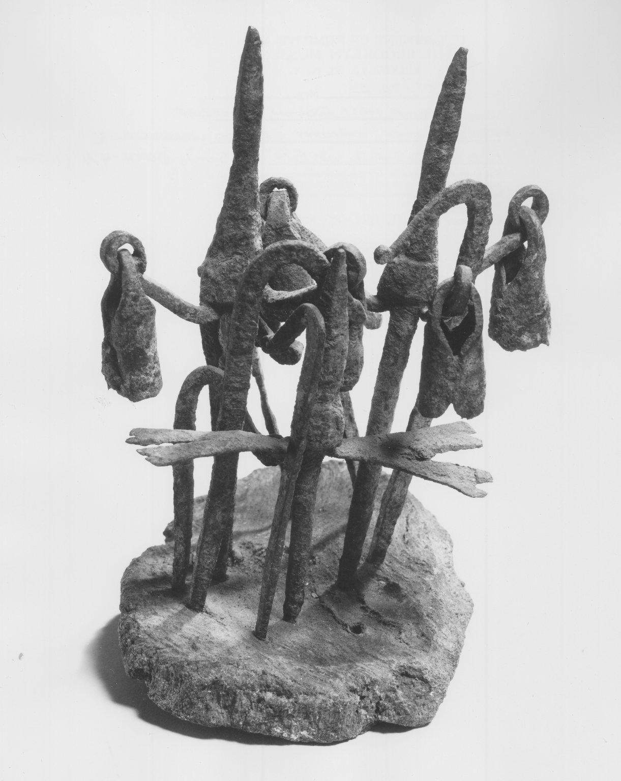 Dogon. Head of Medicine Staff, late 19th–early 20th century. Wood, iron, 6 1/2 x 5 1/4 x 4 1/4 in. (16.5 x 13.3 x 10.8 cm). Brooklyn Museum, Gift of Mr. and Mrs. Aaron Furman, 74.172.2. (Photo: Brooklyn Museum)