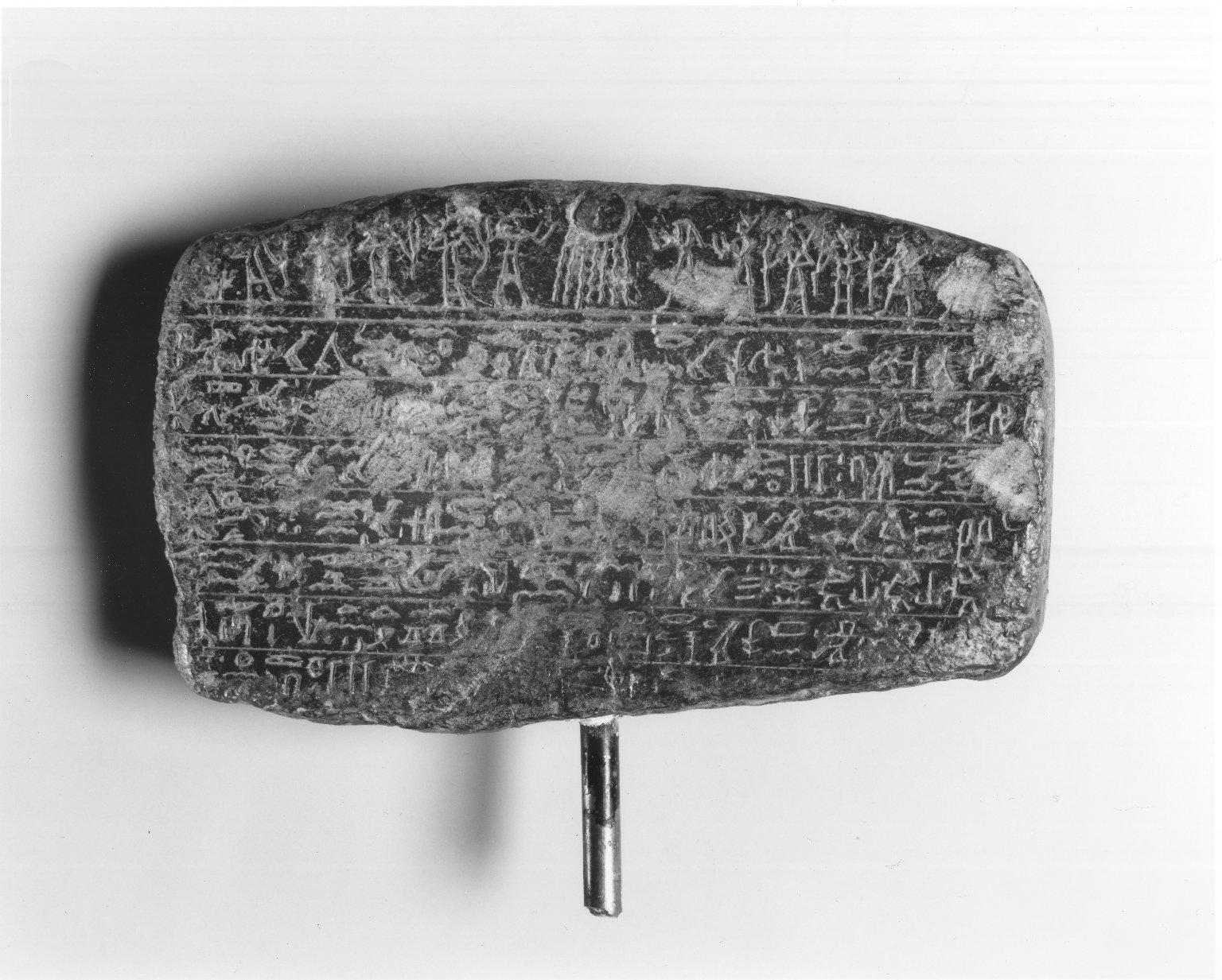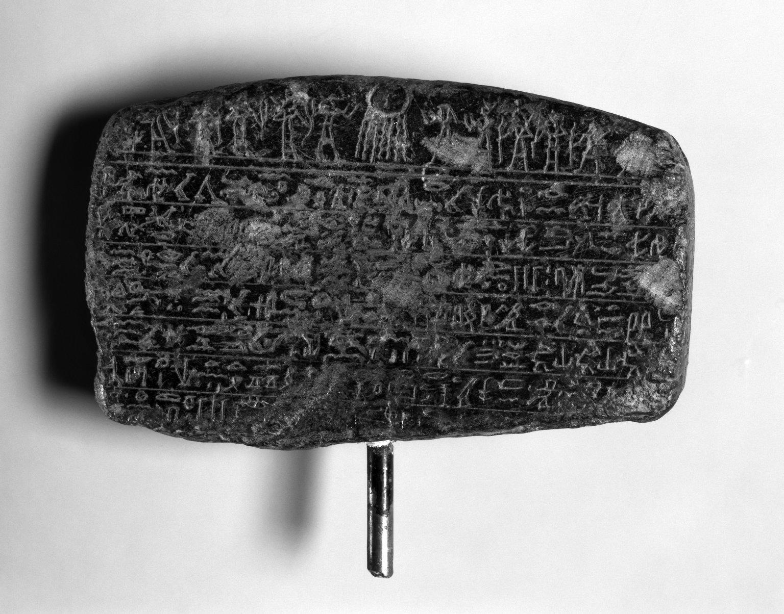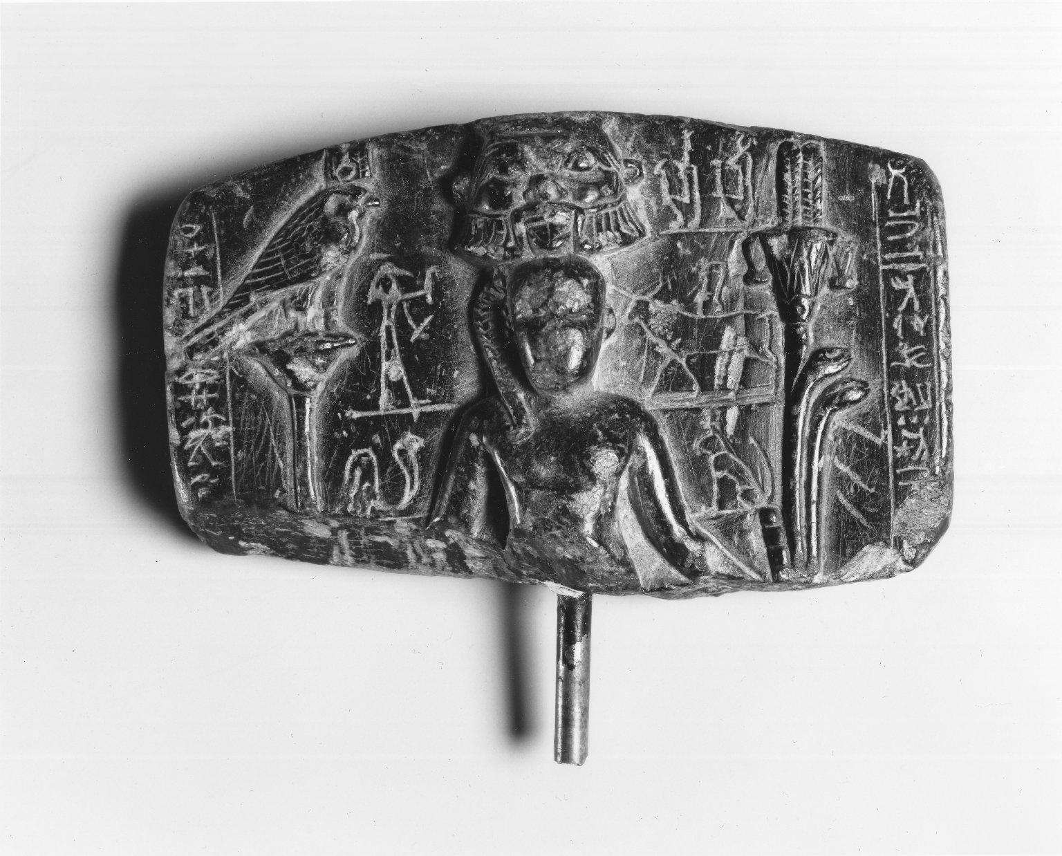 Upper Part of Cippus of Horus, 332–30 B.C.E.. Steatite, 4 x 1 1/4 x 2 5/8 in. (10.1 x 3.2 x 6.6 cm). Brooklyn Museum, Gift of Evangeline Wilbour Blashfield, Theodora Wilbour, and Victor Wilbour honoring the wishes of their mother, Charlotte Beebe Wilbour, as a memorial to their father, Charles Edwin Wilbour, 16.652. (Photo: Brooklyn Museum)