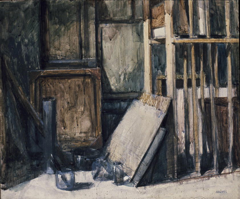 Albert George Handell (American, born 1937). Corner of my Studio (Studio Interior), 1968. Gouache and pencil on gessoed masonite panel, 14 13/16 x 18 in. (37.6 x 45.7 cm). Brooklyn Museum, Gift of Mr. and Mrs. John Koch, 75.38. (Photo: Brooklyn Museum)