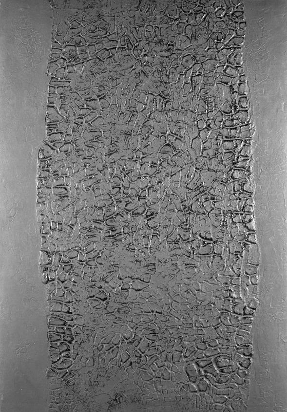 Alberto Burri (Italian, 1915–1995). Untitled, 1973. Etching and aqautint on cast bronze plate, 31 × 41 in. (78.7 × 104.1 cm) frame: 31 × 41 × 2 1/4 in. (78.7 × 104.1 × 5.7 cm). Brooklyn Museum, Designated Purchase Fund, 75.42.2. Fondazione Palazzo Albizzini Collezione Burri, Città di Castello (Perugia) © by SIAE 1973. (Photo: Brooklyn Museum)