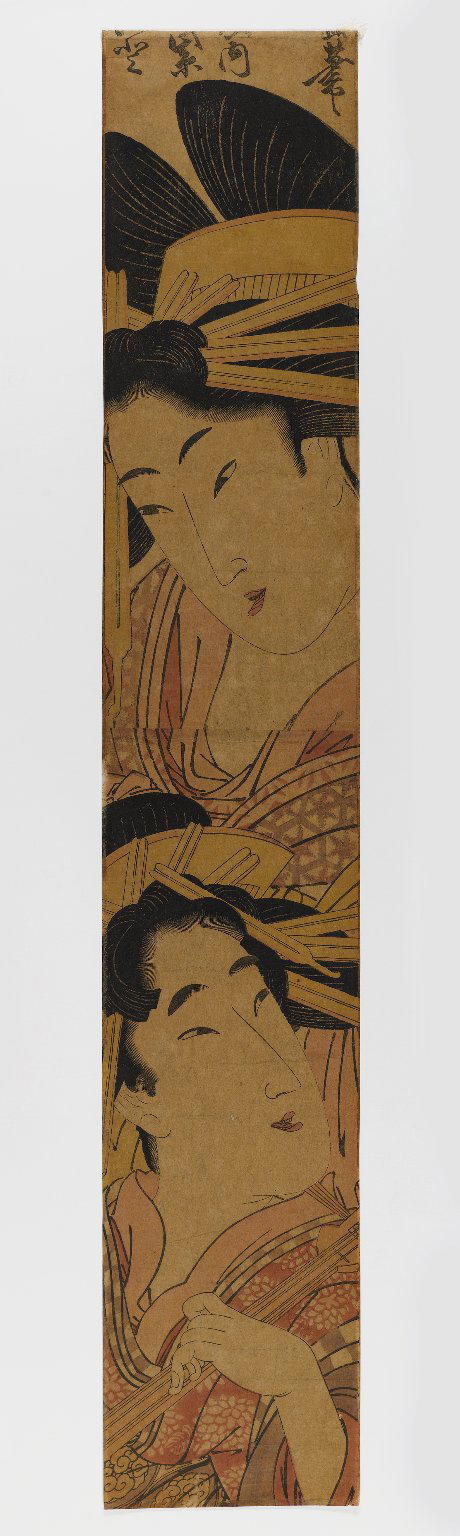Utagawa Kuninao (Japanese, 1793–1854). Hanamurasaki and Konoito of the Tamaya (Tamaya-uchi Hanamurasaki Konoito), circa 1840. Sheet: hashira-e print on paper, 23 1/8 x 4 in. (58.7 x 10.2 cm). Brooklyn Museum, Anonymous gift, 76.151.49. (Photo: Brooklyn Museum)