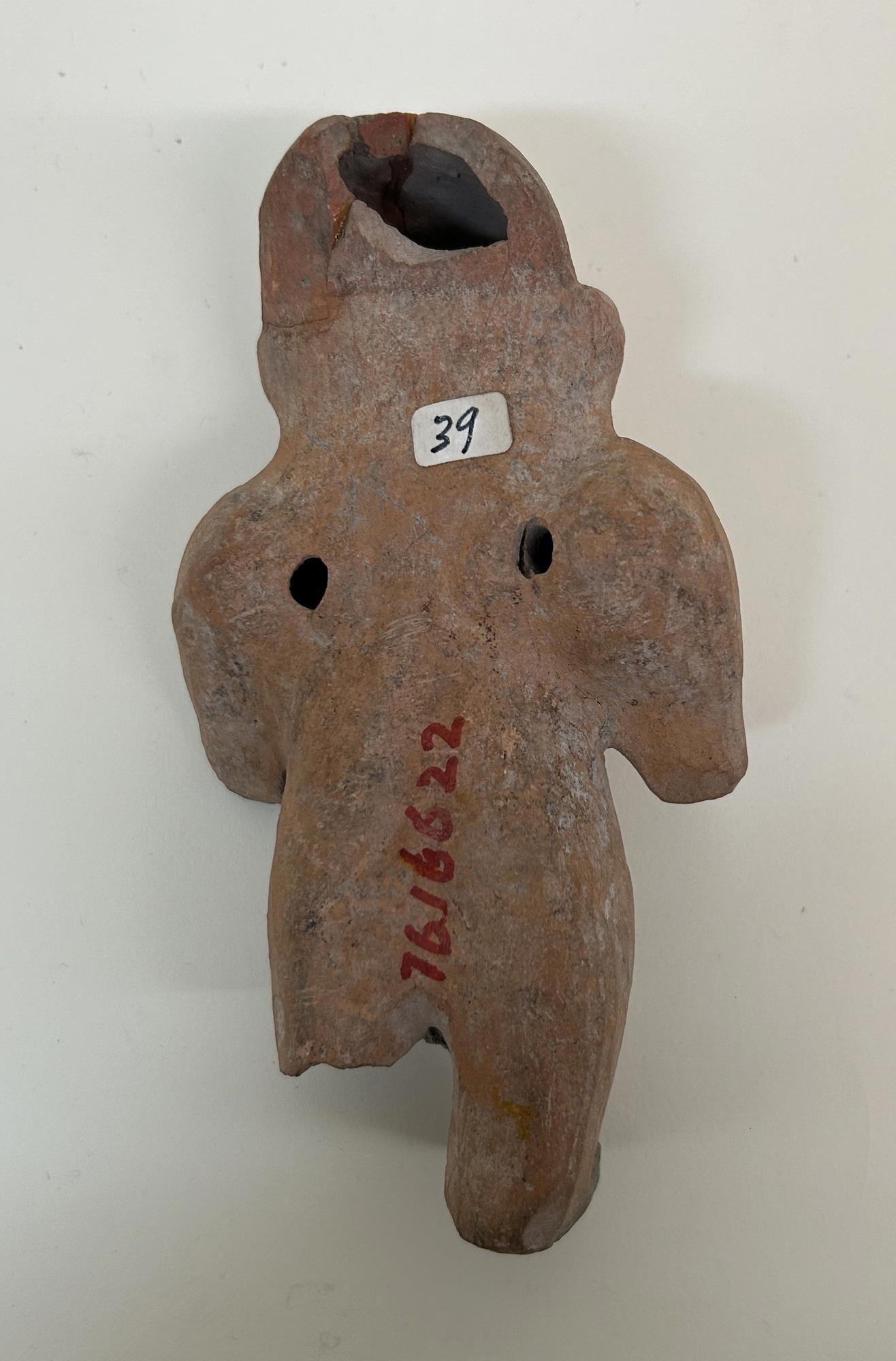 Jama-Coaque. Human Figurine, Ceramic, pigment, 5 7/8 × 3 1/4 × 2 1/4 in. (14.9 × 8.3 × 5.7 cm). Brooklyn Museum, Gift of Egizia Modiano, 76.166.22. (Photo: Brooklyn Museum photgoraph)