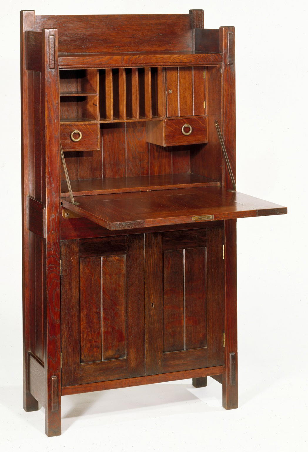 Gustav Stickley (1857–1942). Dropfront Desk, ca. 1903. Oak with copper hardware, 51 1/2 x 25 3/4 x 10 7/8 in. (130.8 x 65.4 x 27.6 cm). Brooklyn Museum, H. Randolph Lever Fund, 77.87. (Photo: Brooklyn Museum)