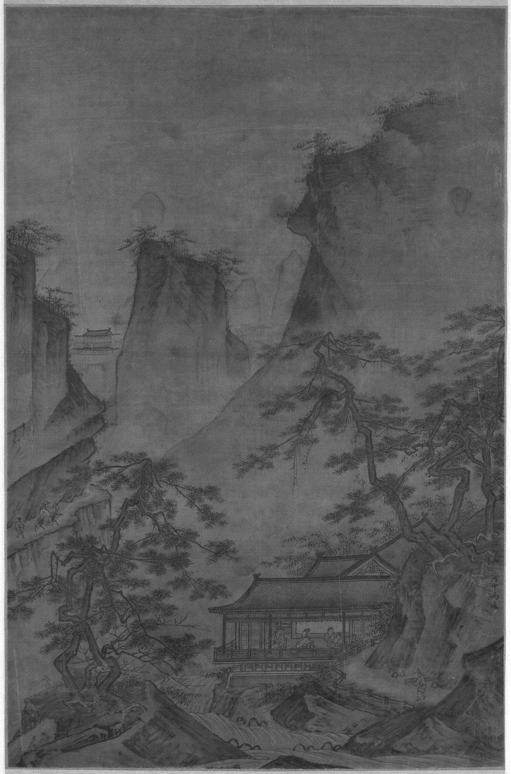 Landscape, 14th century. Hanging scroll, ink and light color on silk, Image: 18 x 11 5/8 in. (45.7 x 29.5 cm) Overall: 71 x 18 in. (180.3 x 45.7 cm). Brooklyn Museum, Designated Purchase Fund, 77.95. (Photo: Brooklyn Museum)
