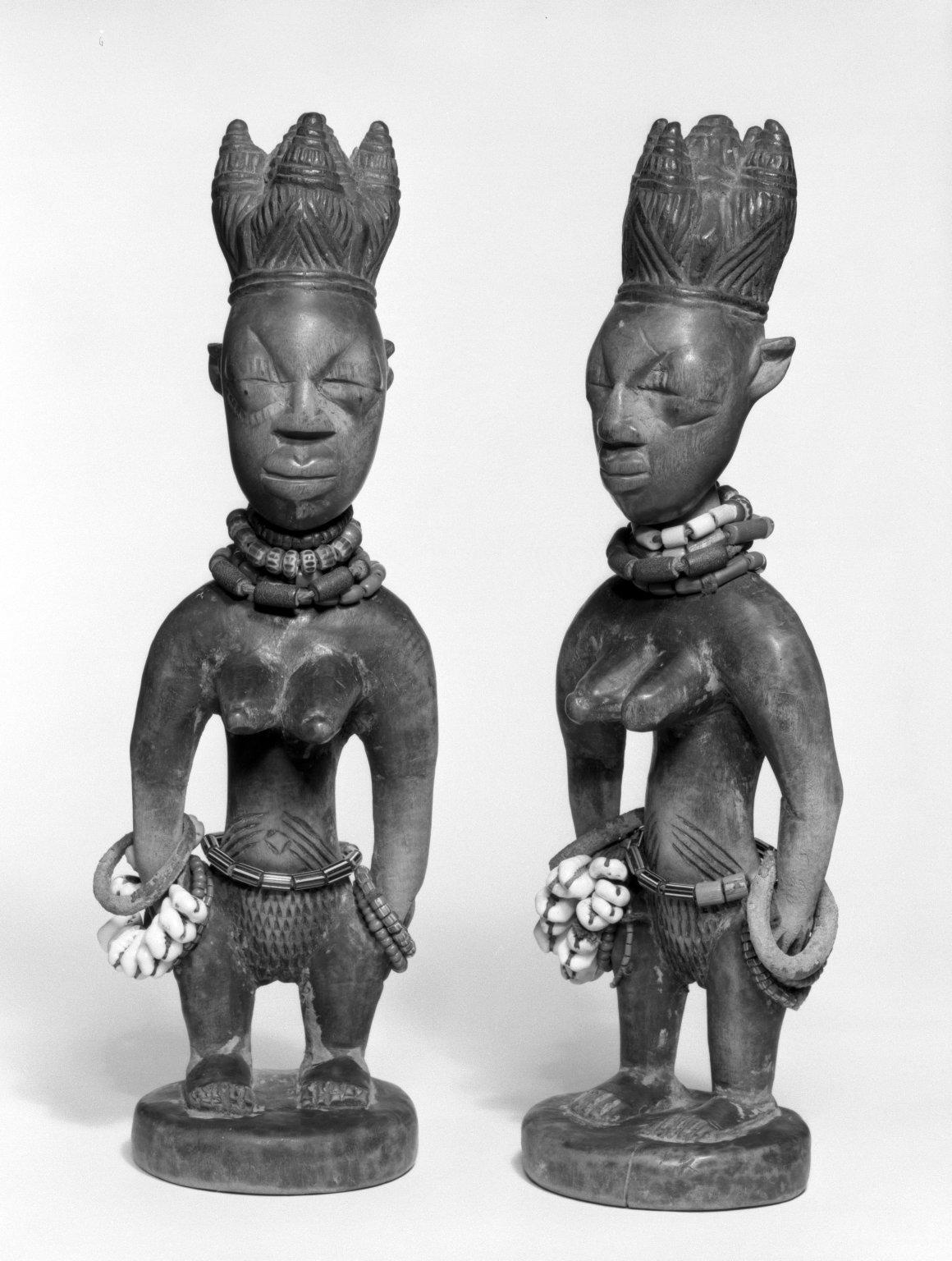 Yorùbá artist. Female twin figure (Ère Ìbejì), late 19th or early 20th century. Wood, pigment, beads, cowrie shells, metal, 10 3/4 x 3 1/2 x 2 3/4 in. Brooklyn Museum, Gift of Mr. and Mrs. Paul B. Taylor, 78.118.5.