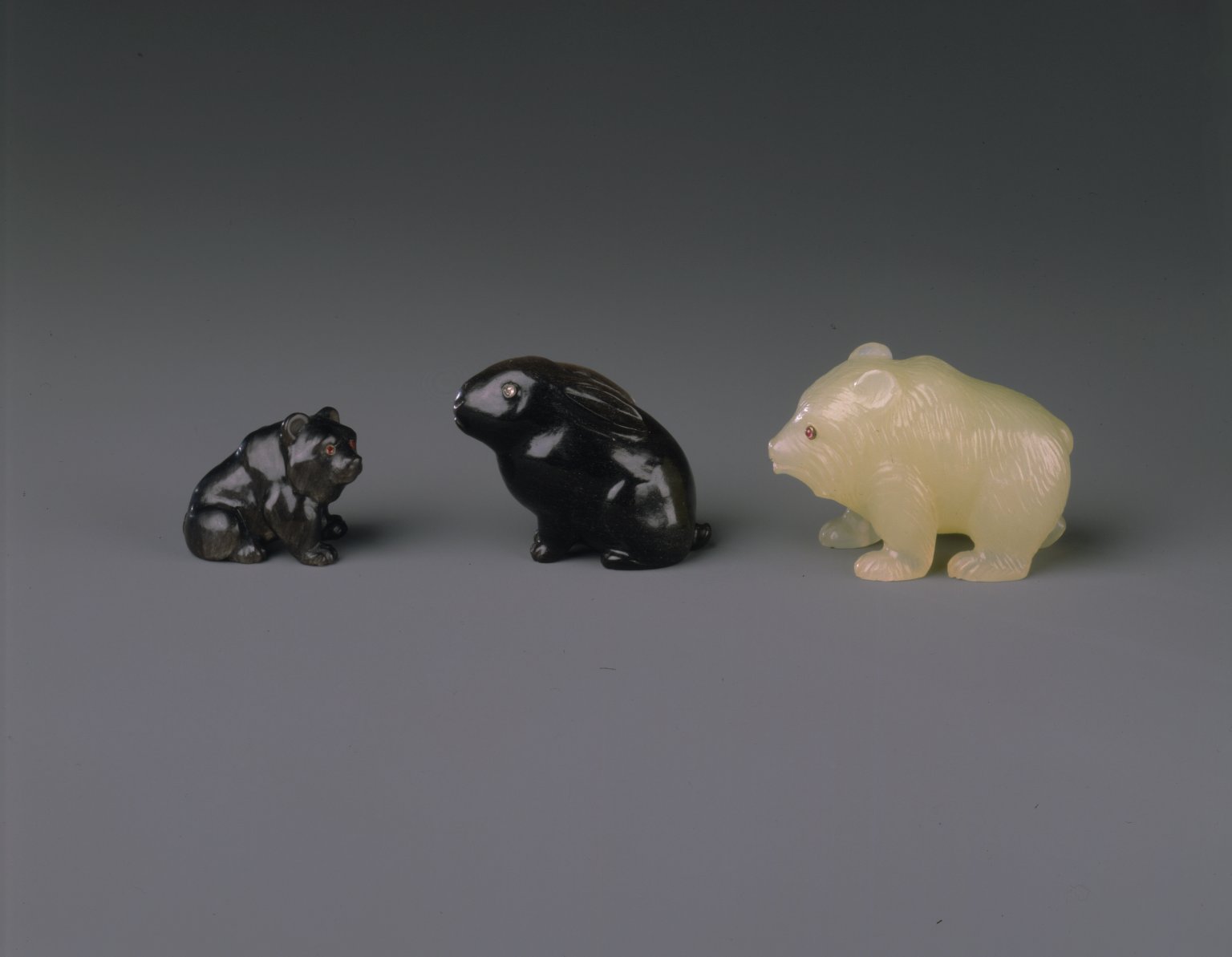 House of Carl Fabergé (1846–1920). Bear, 1886–1917. Obsidian, rubies, 15/16 x 13/16 x 1 1/4 in. (2.3 x 2.0 x 3.2 cm). Brooklyn Museum, Bequest of Helen Babbott Sanders, 78.129.12.