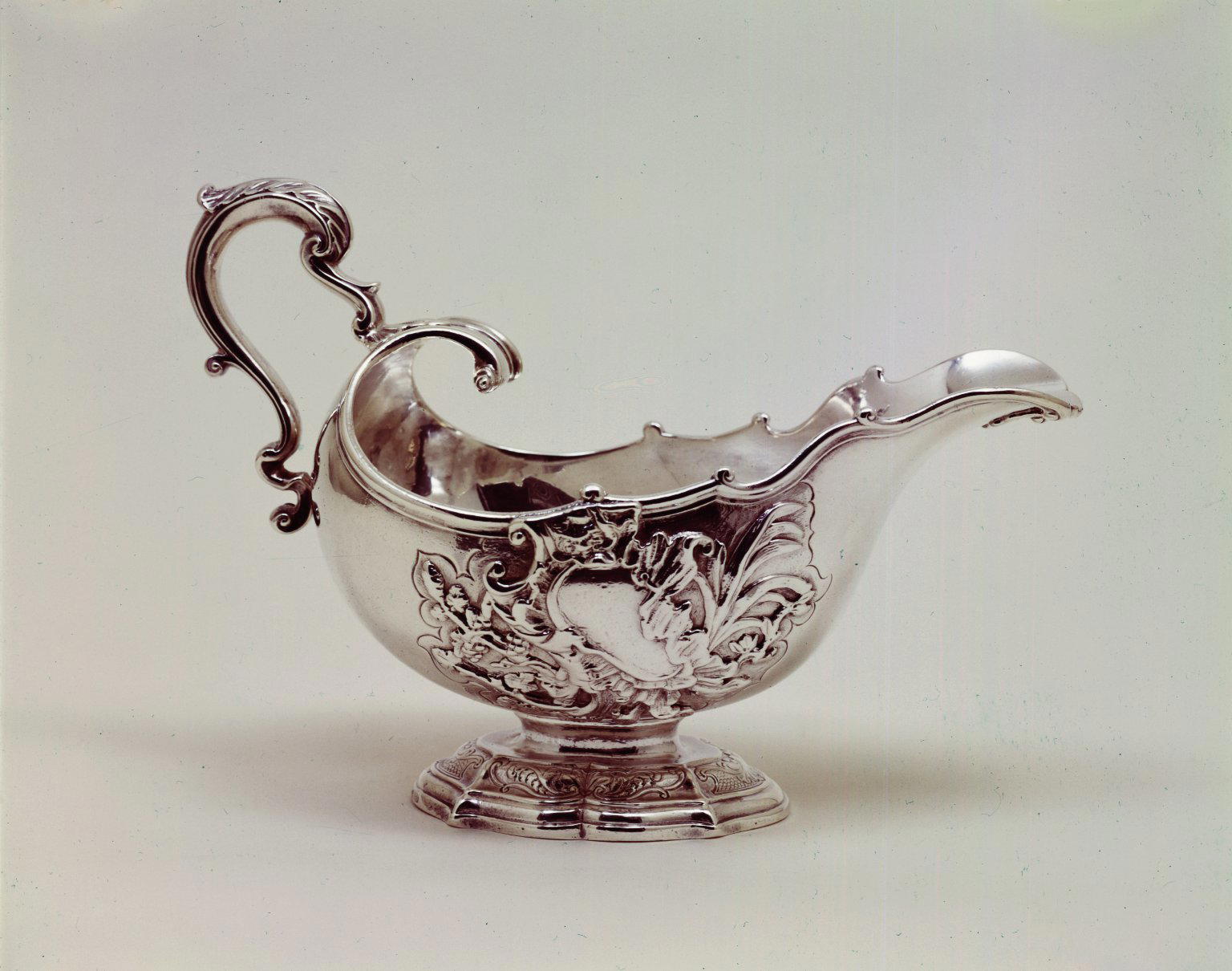 James Shruder. Sauceboat, 1744–1745. Silver, 6 x 4 3/4 x 8 3/4 in. (15.2 x 12.1 x 22.2 cm). Brooklyn Museum, Bequest of Donald S. Morrison, 81.54.14. (Photo: Brooklyn Museum)