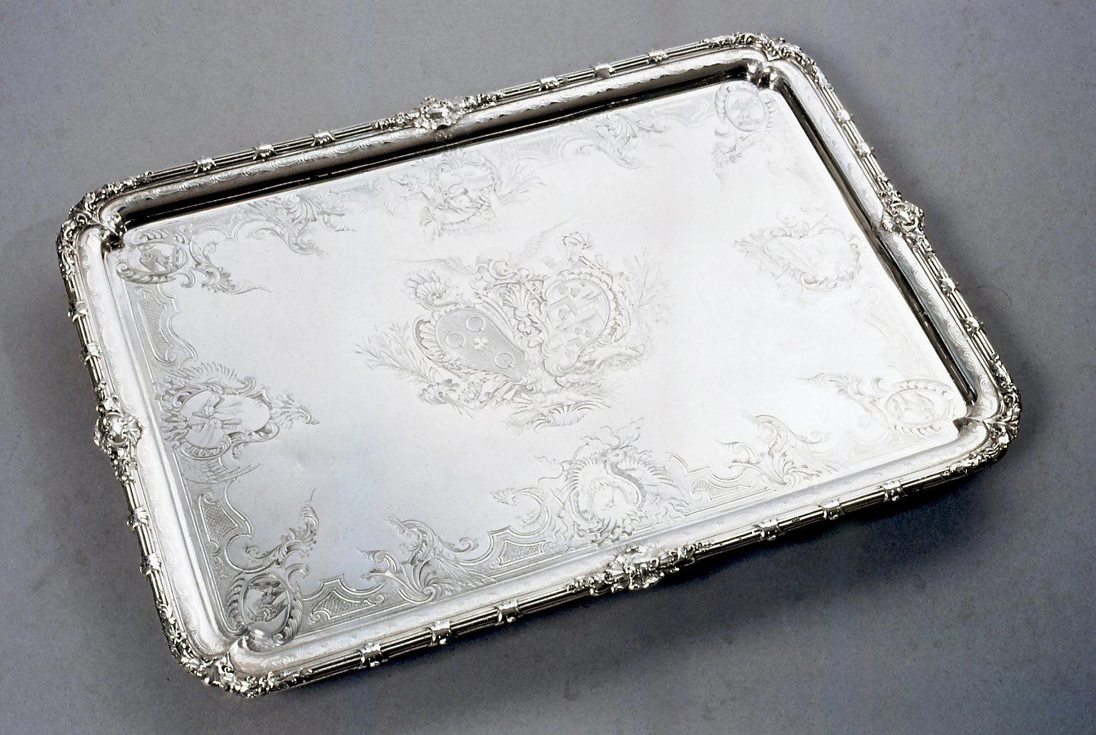 Paul de Lamerie (British, born Netherlands, 1688–1751). Salver, 1734–1735. Silver, 1 1/4 x 9 5/8 x 9 5/8 in. (3.2 x 24.4 x 24.4 cm). Brooklyn Museum, Bequest of Donald S. Morrison, 81.54.48. (Photo: Brooklyn Museum)