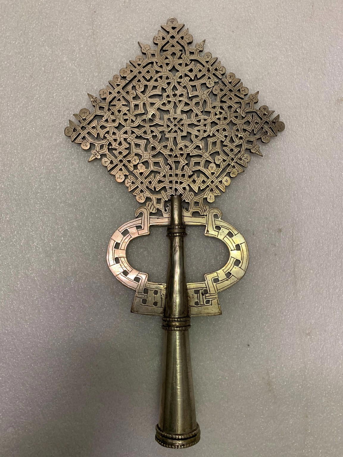 Amhara artist. Processional Cross (qäqwami mäsqäl), 20th century. Silver, 15 x 8 1/8 in. (38.2 x 20.7 cm). Brooklyn Museum, Gift of George V. Corinaldi Jr., 82.102.2.
