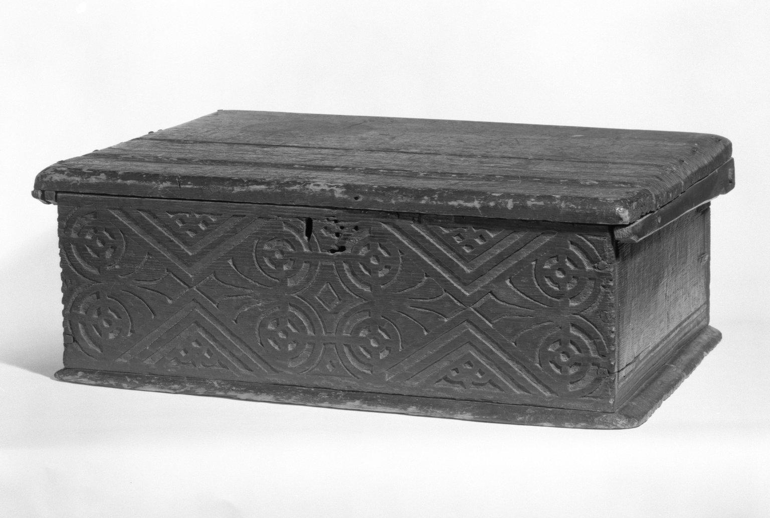 American. Bible Box, ca. 1675. Oak, pine, 81/2 x 23 1/4 x 18 in. (21.6 x 59.1 x 45.7 cm). Brooklyn Museum, Gift of Wunsch Americana Foundation, Inc., 82.166. (Photo: Brooklyn Museum)