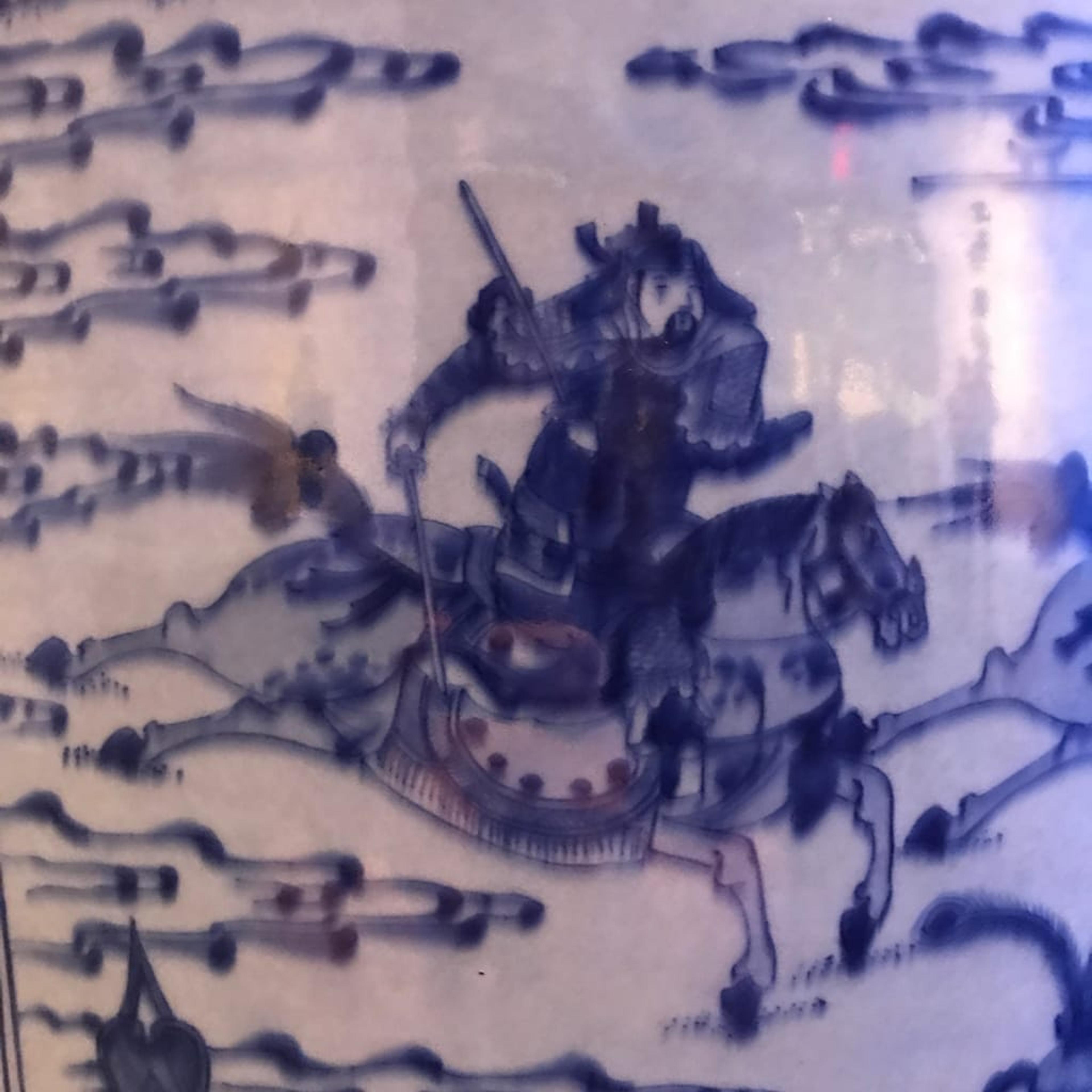 The sapphire tone of the blue decorations here are characteristic of the Qing Dynasty and especially the period of the Kangxi Emperor. Figurative designs like this developed in the previous Ming Dynasty and continued into the Qing, but the subject matter you see here---especially the inclusion of horses---is something that would have specifically spoken to the Manchu elites of the Qing court.Thank you!Does this vase represent anything?