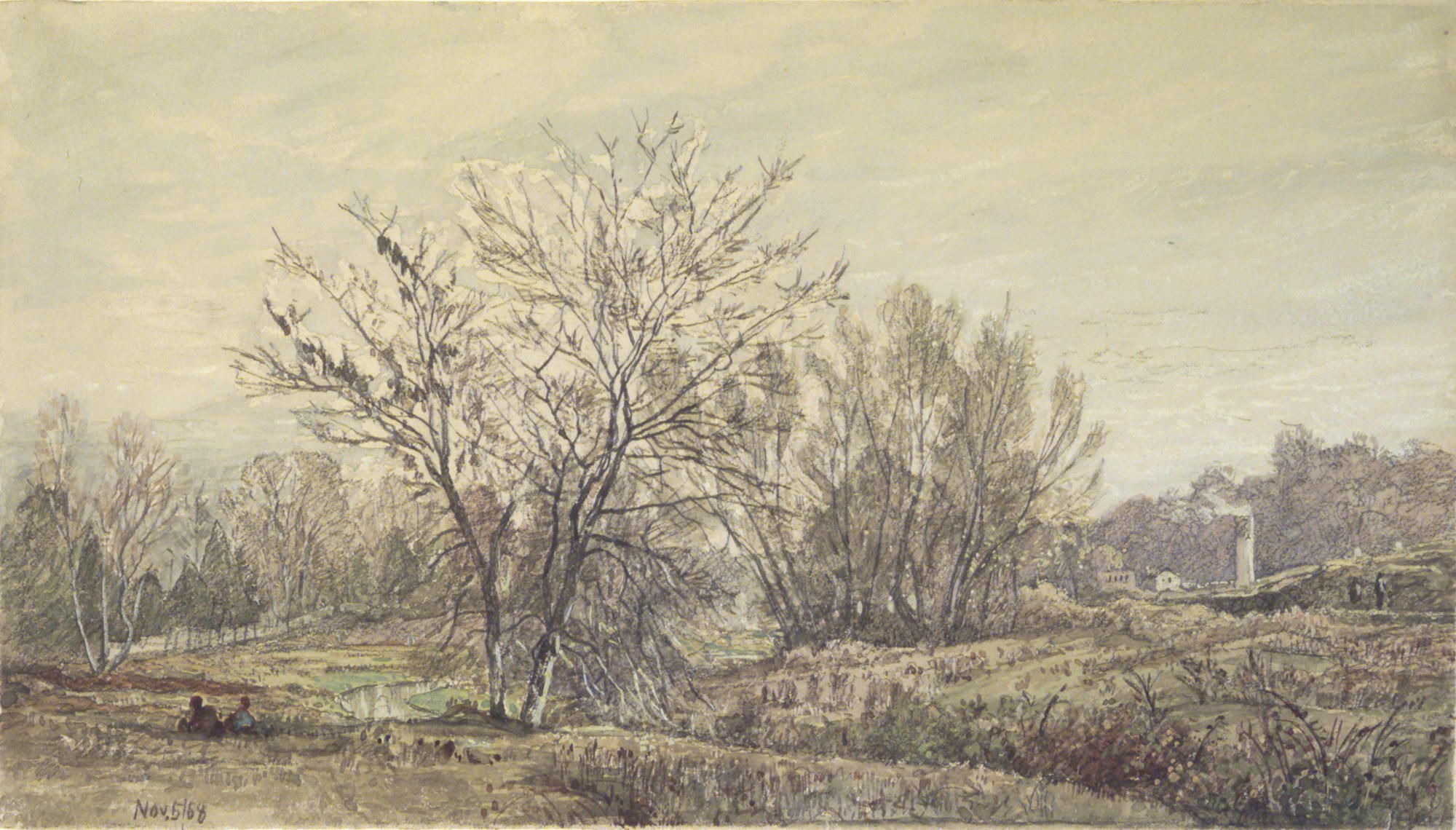 William Trost Richards (American, 1833–1905). Landscape, 1868. Watercolor, pencil and white on paper, Sheet: 5 5/8 x 9 13/16 in. (14.3 x 24.9 cm). Brooklyn Museum, Gift of Edith Ballinger Price, 86.32.2. (Photo: Brooklyn Museum)