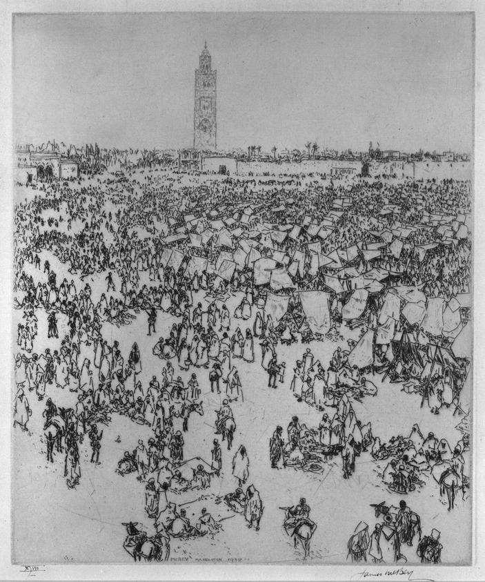 James McBey (Scottish, 1883–1959). Marrakesh, 1938. Etching. Brooklyn Museum, Bequest of Louise Seaman Bechtel, 86.38.3. (Photo: Brooklyn Museum)