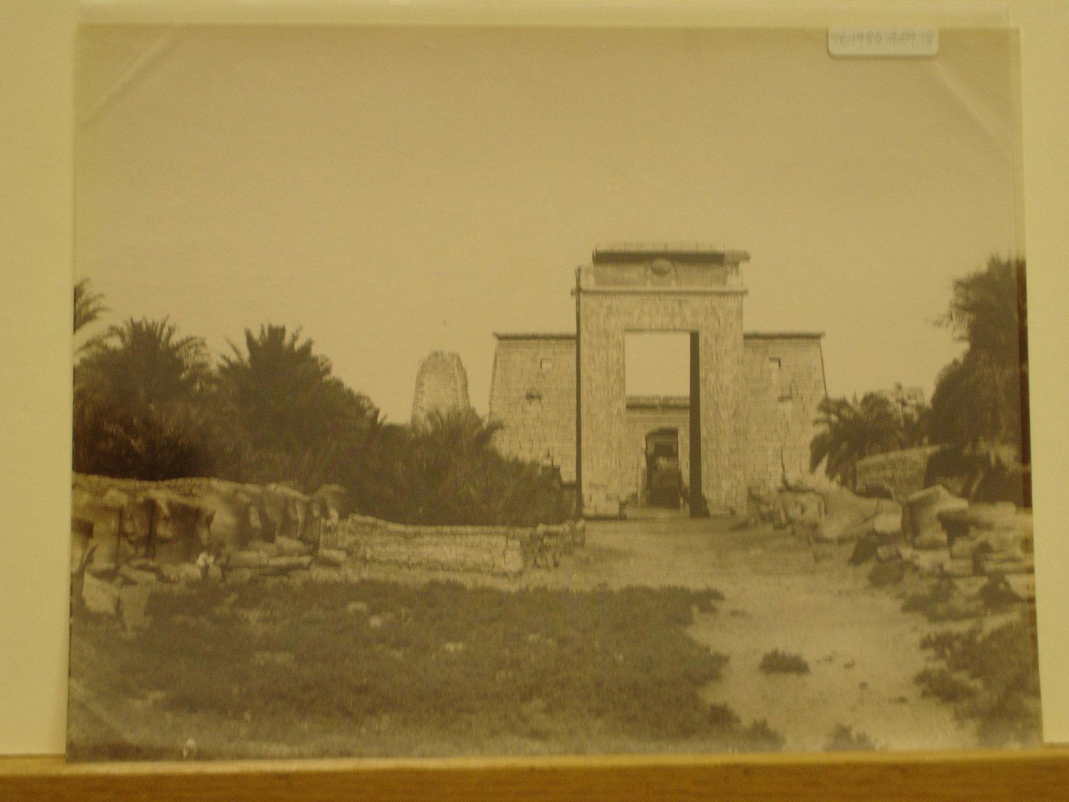 Antonio Beato (Italian and British, ca. 1825–ca.1903). Karnak Sphinx et Pylone de Ptolomee, 19th century. Albumen silver print, image/sheet: 7 15/16 x 10 3/16 in. (20.2 x 25.9 cm). Brooklyn Museum, Gift of Alan Schlussel, 86.250.18. (Photo: Brooklyn Museum)