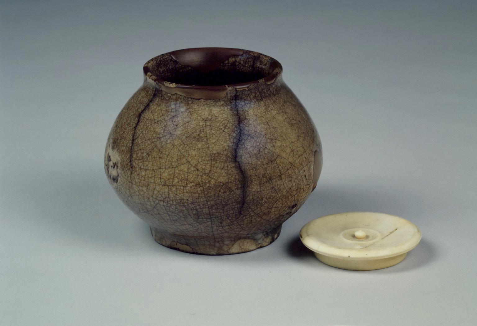 Jar, 20th century. Porcelain, glaze, Height: 2 15/16 in. (7.4 cm) Diameter at mouth: 1 15/16 in. (5 cm) Diameter at base: 2 1/16 in. (5.2 cm) Diameter at widest point: 3 1/4 in. (8.3 cm). Brooklyn Museum, Gift of Dr. and Mrs. John P. Lyden, 86.271.35. (Photo: Brooklyn Museum)