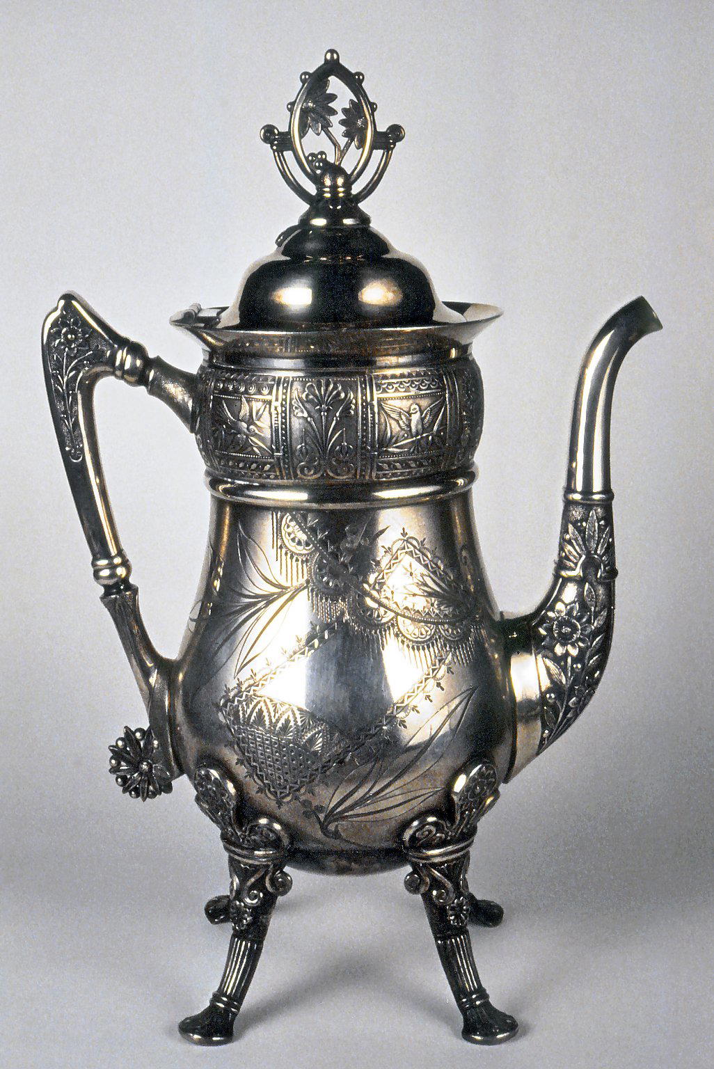 Pairpoint Manufacturing Company (1880–1929). Coffee Pot, ca. 1880. Silver - plated white metal, 12 3/4 x 8 1/4 x 5 in. (32.4 x 21 x 12.7 cm). Brooklyn Museum, H. Randolph Lever Fund, 87.124. (Photo: Brooklyn Museum)