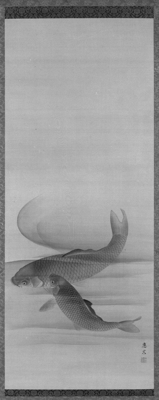 Maruyama Oshin (Japanese, 1790–1838). Pair of Carp, Hanging - Scroll, 19th century. Hanging scroll, ink and light color on silk, Image: 43 1/2 x 17 1/4 in. (110.5 x 43.8 cm) 79 x 23 in. (200.7 x 58.4 cm). Brooklyn Museum, Gift of Dr. and Mrs. Stanley L. Wallace, 87.131. (Photo: Brooklyn Museum)