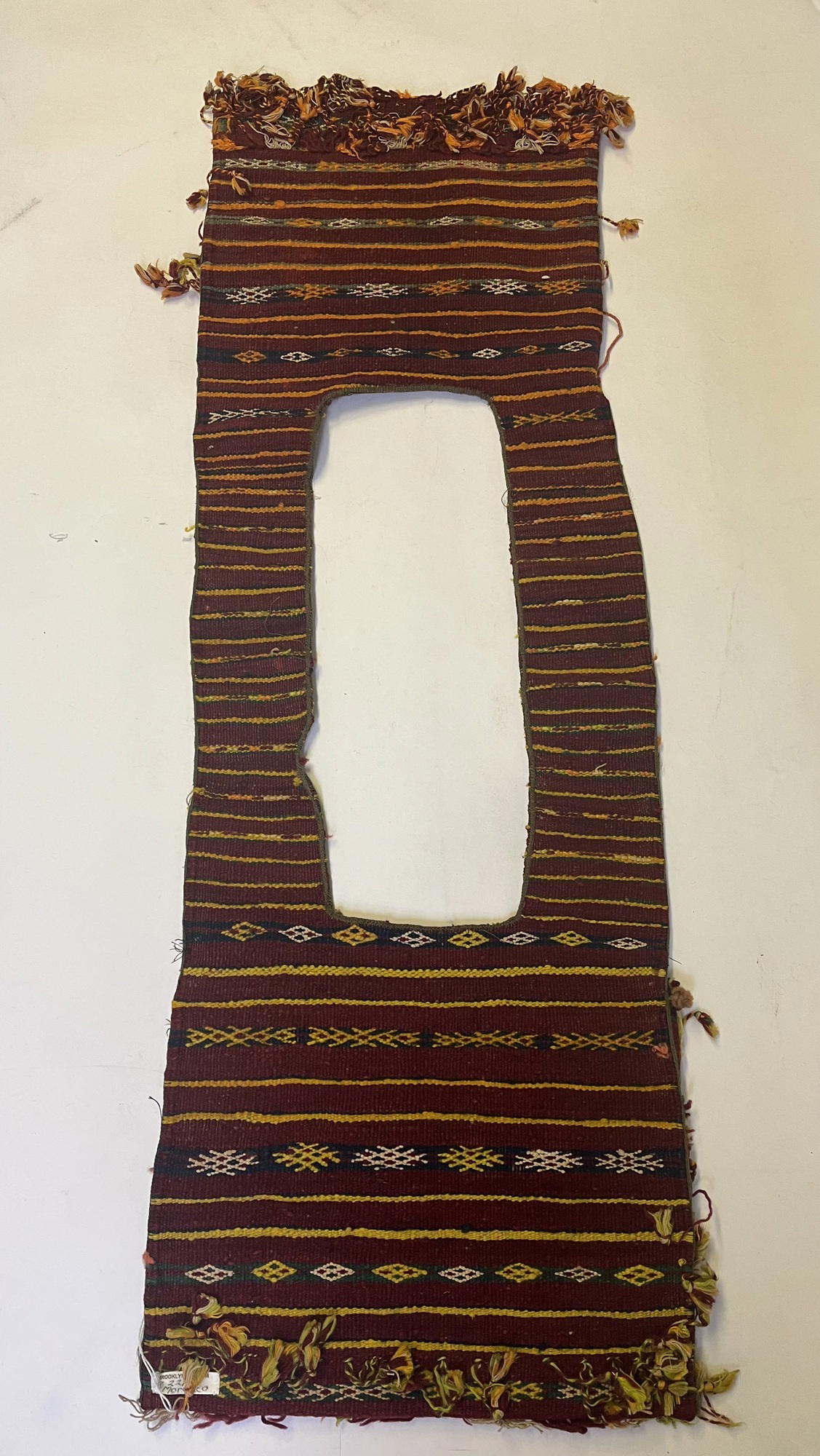 Ait Zemmour; Amazigh. Saddle Bag, Wool, cotton brocade, 13 x 41 in. (33 x 104.1 cm). Brooklyn Museum, Gift of Dr. Virgil H. Bird, 87.227.2. (Photo: Brooklyn Museum)