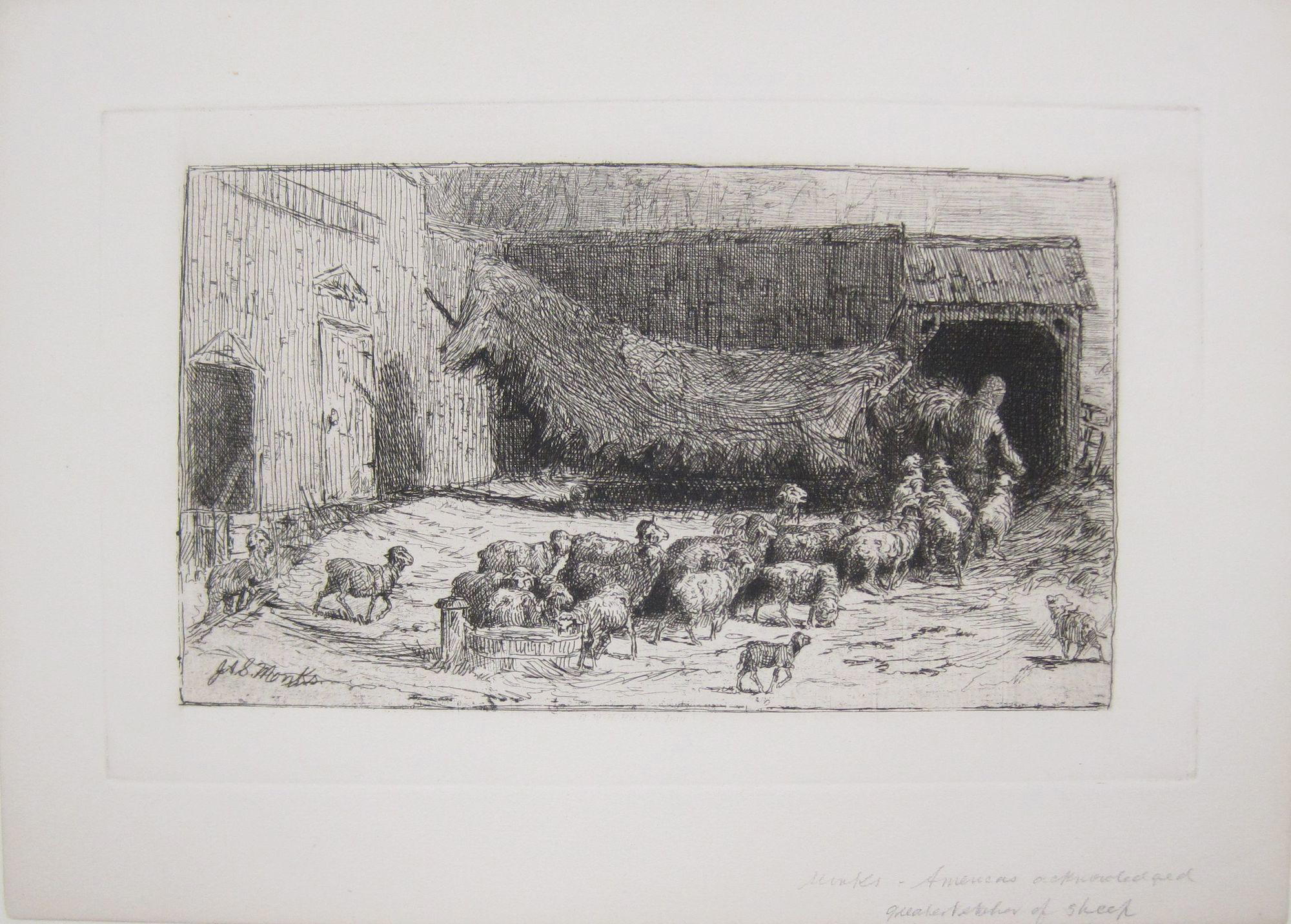 John Austin Sands Monks (American, 1850 –1917). Untitled (Barnyard Scene with Sheep), n.d.. Etching on simulated laid paper, Image (Plate): 6 x 9 13/16 in. (15.2 x 24.9 cm) Sheet: 8 3/8 x 11 3/4 in. (21.2 x 29.9 cm). Brooklyn Museum, Gift of Dr. Clark S. Marlor, 88.6.6. (Photo: Brooklyn Museum)