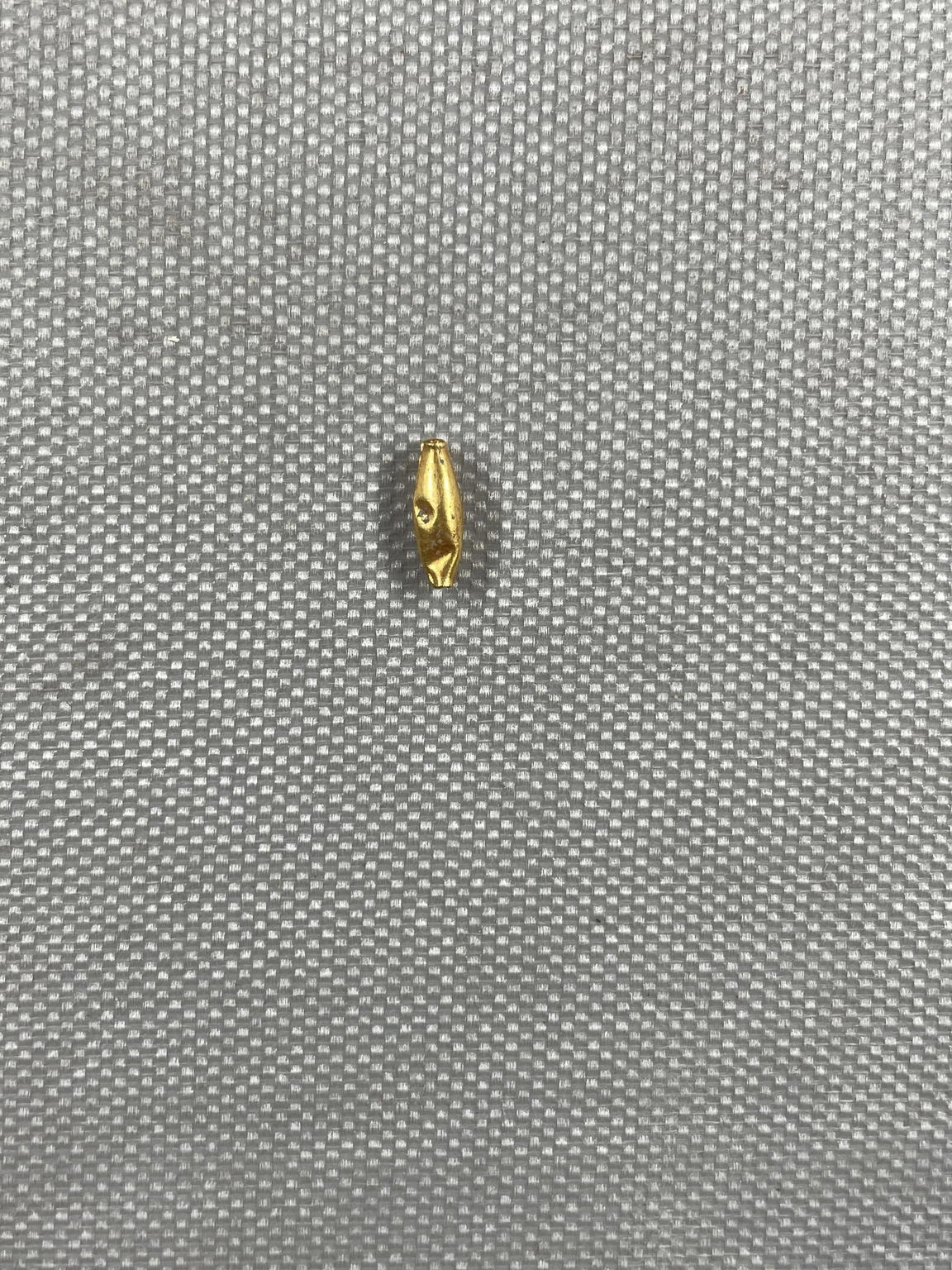 Small Bead, Gold, Diam. 3/16 × 7/16 in. (0.4 × 1.1 cm). Brooklyn Museum, Charles Edwin Wilbour Fund, 37.713E. (Photo: Brooklyn Museum)