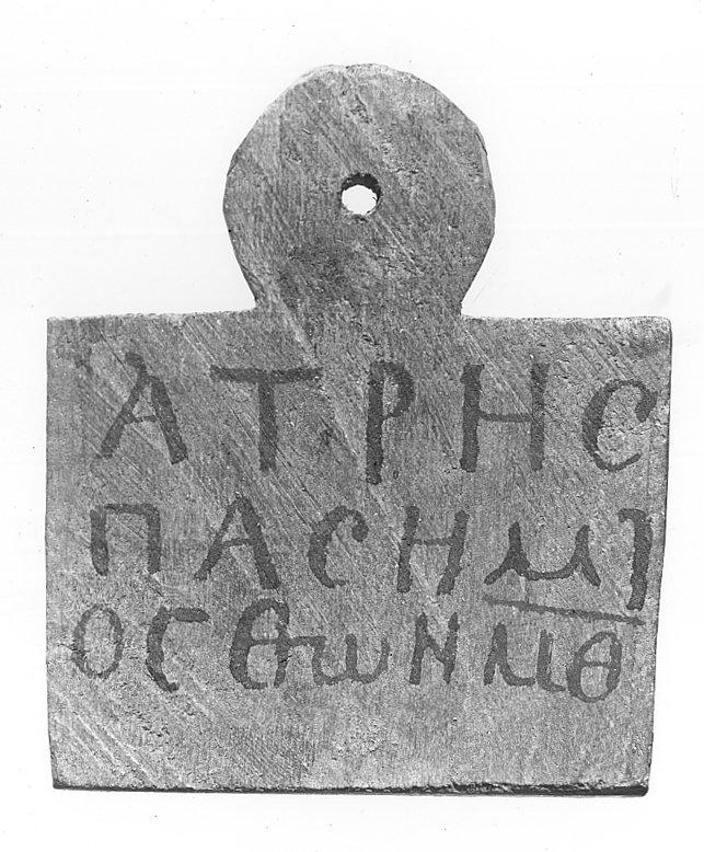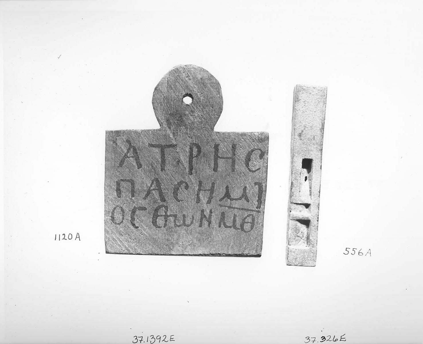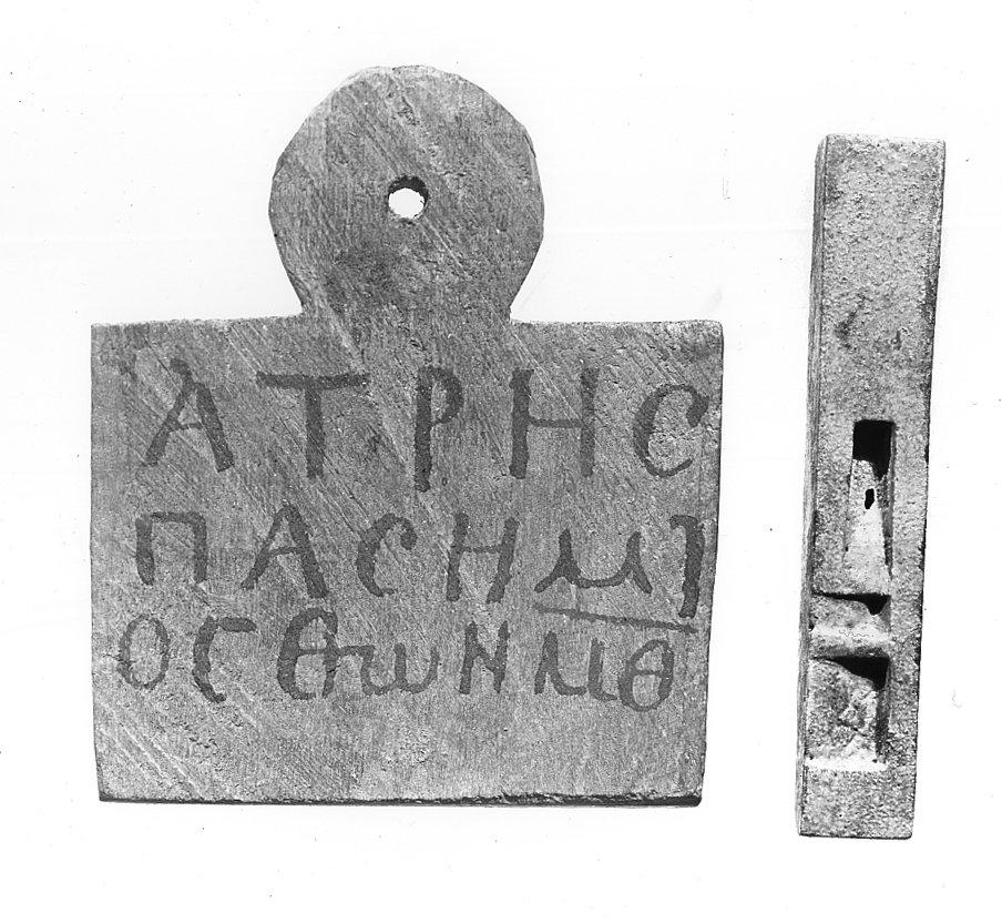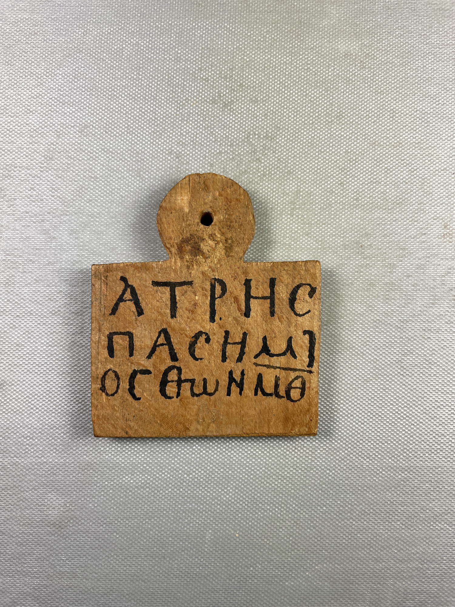 Nubian; Greek; Egyptian. Mummy Tag of Hatres, 100 C.E.–300 C.E.. Wood, pigment, 3 9/16 x 3 1/8 x 7/16 in. (9.1 x 7.9 x 1.1 cm). Brooklyn Museum, Charles Edwin Wilbour Fund, 37.1392E. (Photo: Brooklyn Museum)