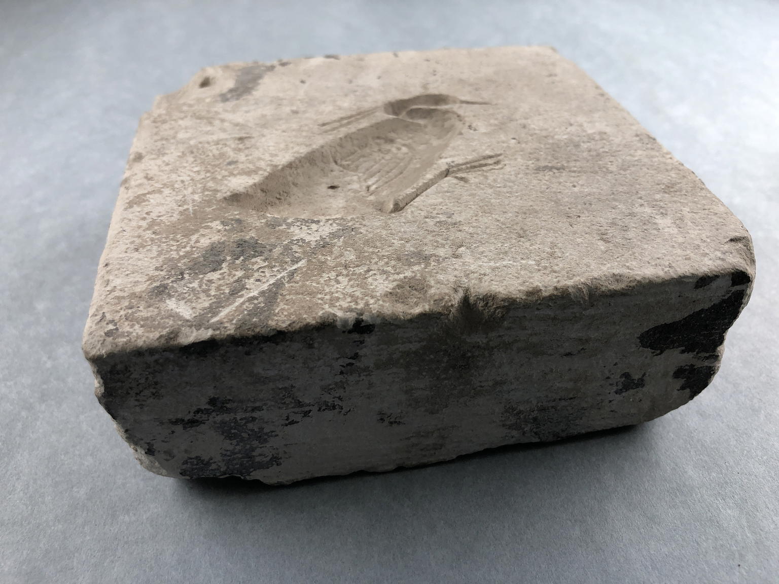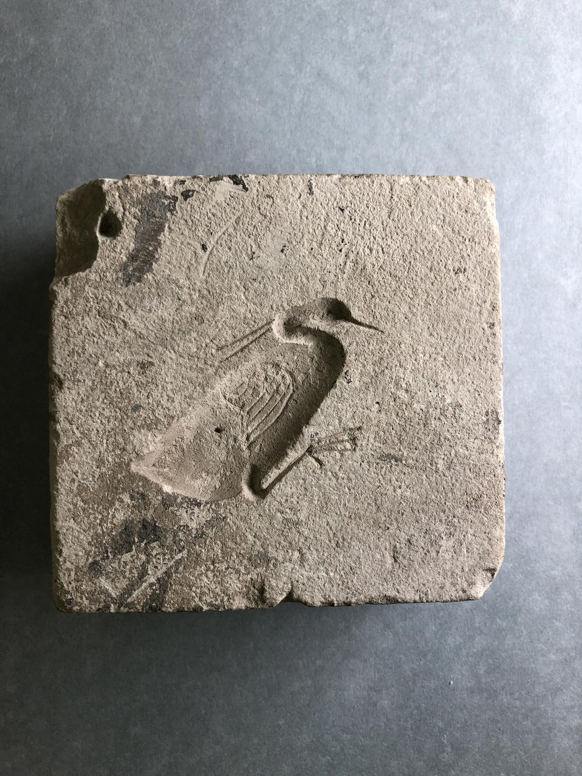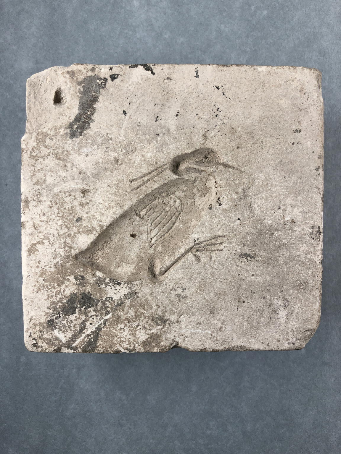 Mold for Making Benu Bird, 305–30 B.C.E.. Limestone, 5 1/16 × 4 13/16 × 1 5/8 in. (12.8 × 12.3 × 4.2 cm). Brooklyn Museum, Charles Edwin Wilbour Fund, 37.1536E.